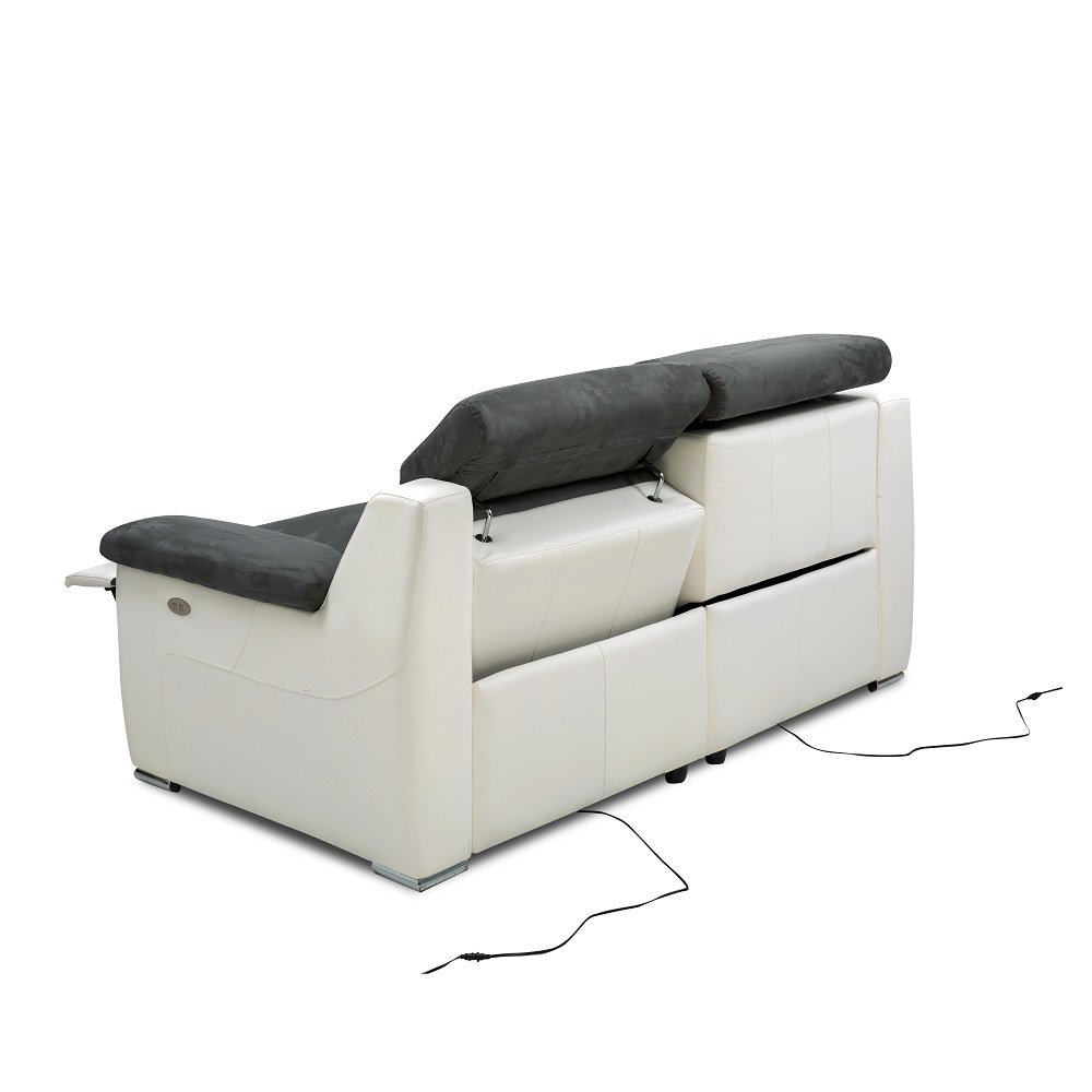Canapé 3 places relax électrique RELAXO avec système zéro wall bicolore blanc / gris