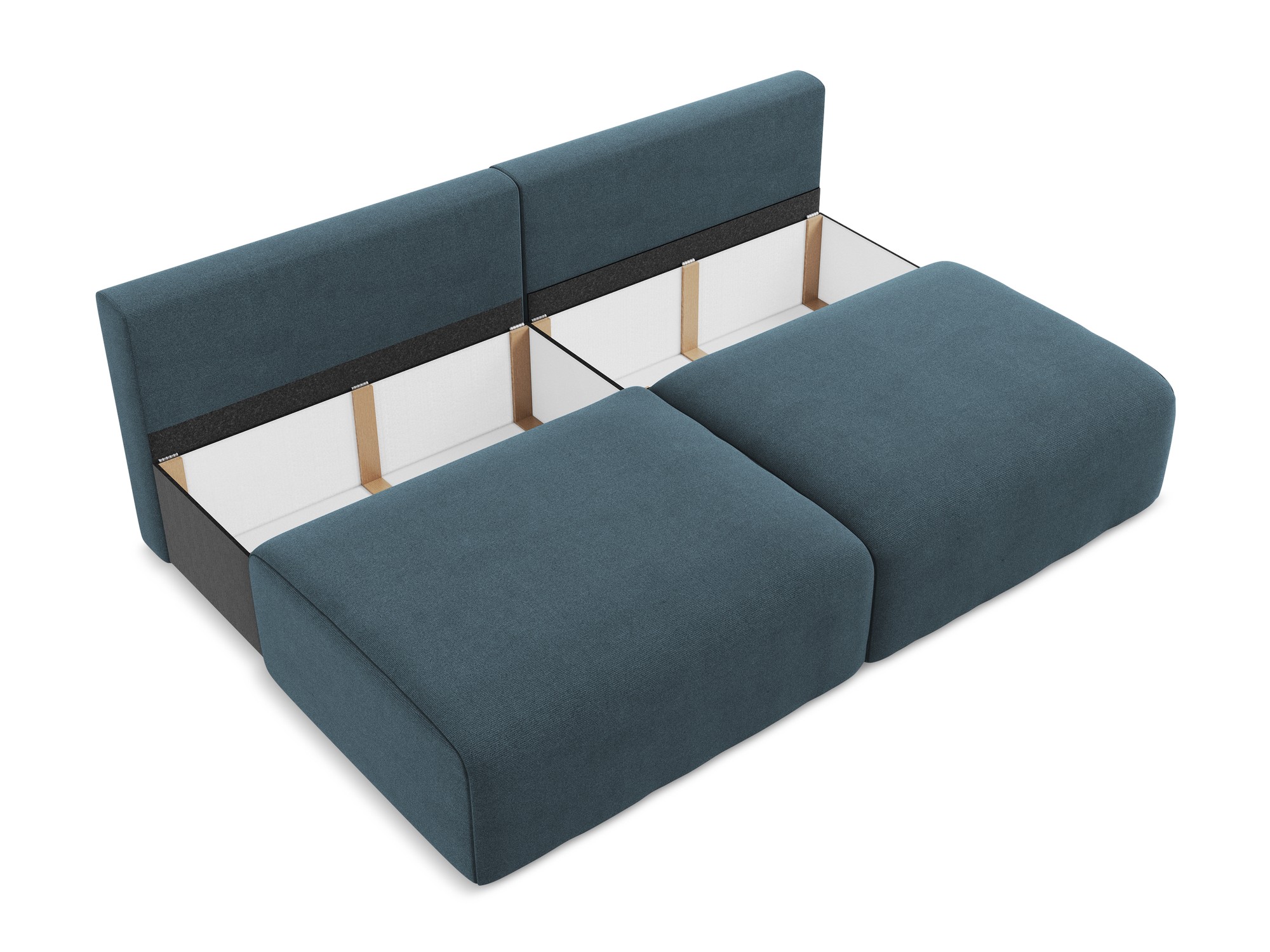 Avec une largeur généreuse de 216 cm et une profondeur de 102 cm, le canapé 3 places Kona offre de l'espace pour des heures de détente à trois ou seul. Grâce à sa construction bien pensée, il se transforme en un rien de temps en un lit confortable avec une surface de couchage de 204 x 155 cm - parfait pour les invités spontanés qui passent la nuit ou une petite sieste entre les deux. L'espace de rangement sous le siège offre suffisamment d'espace pour la literie, les couvertures ou les accessoires de maison et garantit que votre espace de vie reste toujours bien rangé. La base du canapé est faite de bois de pin robuste et de panneaux renforcés, assurant stabilité et durabilité. Avec une capacité de charge maximale de 350 kg, le canapé est synonyme de qualité fiable. Les ressorts ondulés de type B et le rembourrage moelleux en mousse de polyuréthane (30 kg/m³) vous offrent un confort d'assise optimal. Les coussins avec un mélange de silicone et de mousse s'adaptent parfaitement et assurent une détente maximale. La housse est composée d'un tissu structuré de haute qualité, qui séduit par sa structure fine et son motif subtil. Le tissu est agréablement doux au toucher et possède un revêtement hydrophobe qui permet aux liquides de s'écouler tout simplement. Sa résistance à l'abrasion Martindale de 50 000 cycles garantit que le matériau conserve longtemps sa qualité, même en cas d'usage intensif. Avec son design ouvert sans accoudoirs, le canapé Kona s'intègre harmonieusement dans les espaces de vie modernes et crée une ambiance aérée et accueillante. Les pieds en plastique noir ajoutent des accents subtils et complètent avec style l'ensemble.