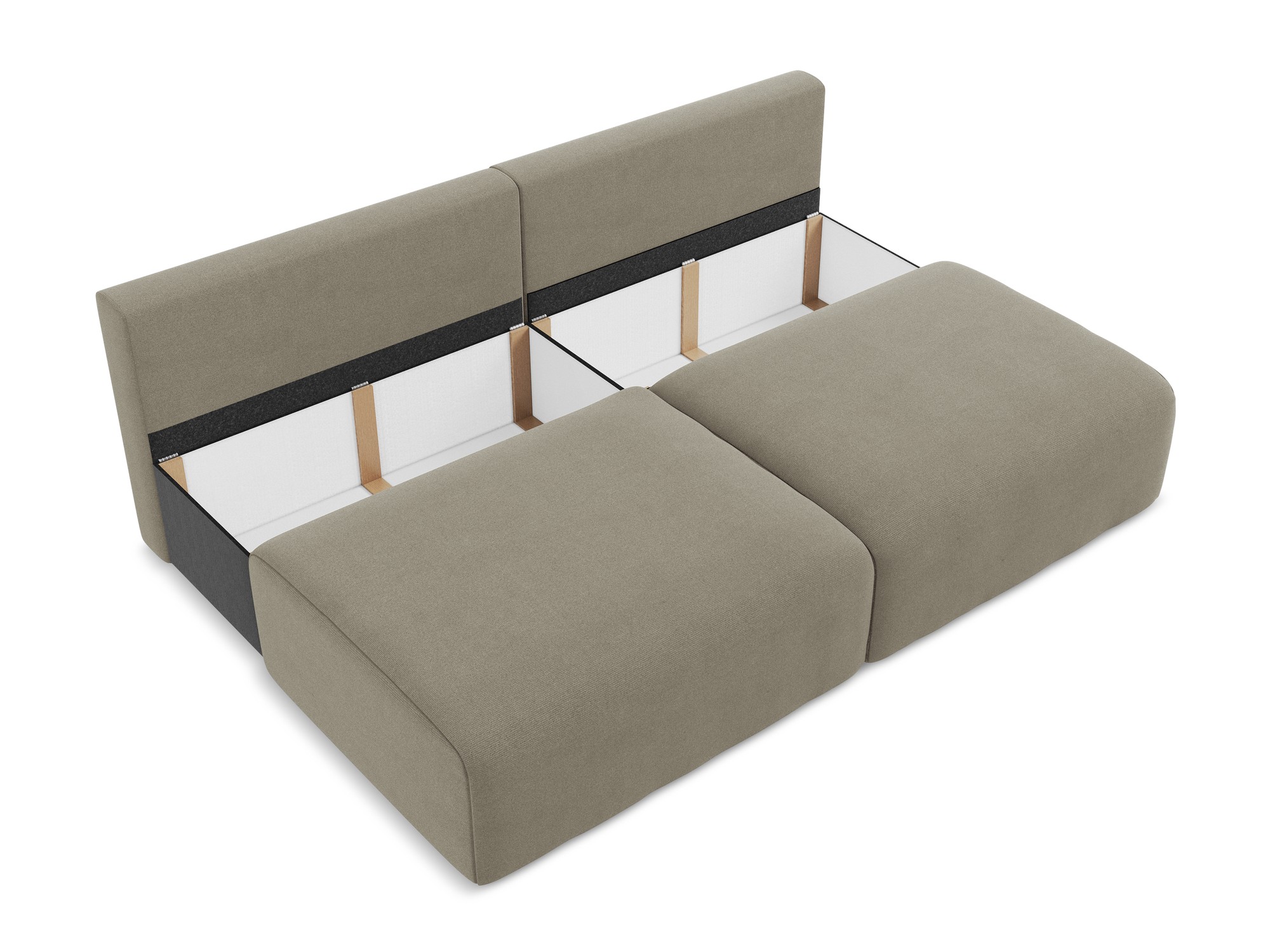 Avec une largeur généreuse de 216 cm et une profondeur de 102 cm, le canapé 3 places Kona offre de l'espace pour des heures de détente à trois ou seul. Grâce à sa construction bien pensée, il se transforme en un rien de temps en un lit confortable avec une surface de couchage de 204 x 155 cm - parfait pour les invités spontanés qui passent la nuit ou une petite sieste entre les deux. L'espace de rangement sous le siège offre suffisamment d'espace pour la literie, les couvertures ou les accessoires de maison et garantit que votre espace de vie reste toujours bien rangé. La base du canapé est faite de bois de pin robuste et de panneaux renforcés, assurant stabilité et durabilité. Avec une capacité de charge maximale de 350 kg, le canapé est synonyme de qualité fiable. Les ressorts ondulés de type B et le rembourrage moelleux en mousse de polyuréthane (30 kg/m³) vous offrent un confort d'assise optimal. Les coussins avec un mélange de silicone et de mousse s'adaptent parfaitement et assurent une détente maximale. La housse est composée d'un tissu structuré de haute qualité, qui séduit par sa structure fine et son motif subtil. Le tissu est agréablement doux au toucher et possède un revêtement hydrophobe qui permet aux liquides de s'écouler tout simplement. Sa résistance à l'abrasion Martindale de 50 000 cycles garantit que le matériau conserve longtemps sa qualité, même en cas d'usage intensif. Avec son design ouvert sans accoudoirs, le canapé Kona s'intègre harmonieusement dans les espaces de vie modernes et crée une ambiance aérée et accueillante. Les pieds en plastique noir ajoutent des accents subtils et complètent avec style l'ensemble.