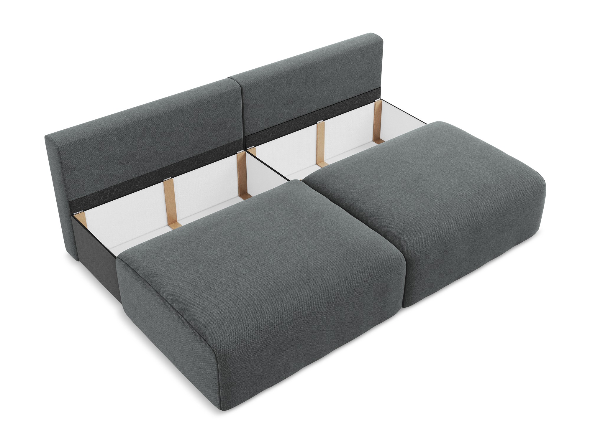 Avec une largeur généreuse de 216 cm et une profondeur de 102 cm, le canapé 3 places Kona offre de l'espace pour des heures de détente à trois ou seul. Grâce à sa construction bien pensée, il se transforme en un rien de temps en un lit confortable avec une surface de couchage de 204 x 155 cm - parfait pour les invités spontanés qui passent la nuit ou une petite sieste entre les deux. L'espace de rangement sous le siège offre suffisamment d'espace pour la literie, les couvertures ou les accessoires de maison et garantit que votre espace de vie reste toujours bien rangé. La base du canapé est faite de bois de pin robuste et de panneaux renforcés, assurant stabilité et durabilité. Avec une capacité de charge maximale de 350 kg, le canapé est synonyme de qualité fiable. Les ressorts ondulés de type B et le rembourrage moelleux en mousse de polyuréthane (30 kg/m³) vous offrent un confort d'assise optimal. Les coussins avec un mélange de silicone et de mousse s'adaptent parfaitement et assurent une détente maximale. La housse est composée d'un tissu structuré de haute qualité, qui impressionne par sa structure fine et son motif subtil. Le tissu est agréablement doux au toucher et possède un revêtement hydrophobe qui permet aux liquides de s'écouler tout simplement. Sa résistance à l'abrasion Martindale de 50 000 cycles garantit que le matériau conserve longtemps sa qualité, même en cas d'usage intensif. Avec son design ouvert sans accoudoirs, le canapé Kona s'intègre harmonieusement dans les espaces de vie modernes et crée une ambiance aérée et accueillante. Les pieds en plastique noir ajoutent des accents subtils et complètent avec style l'ensemble.