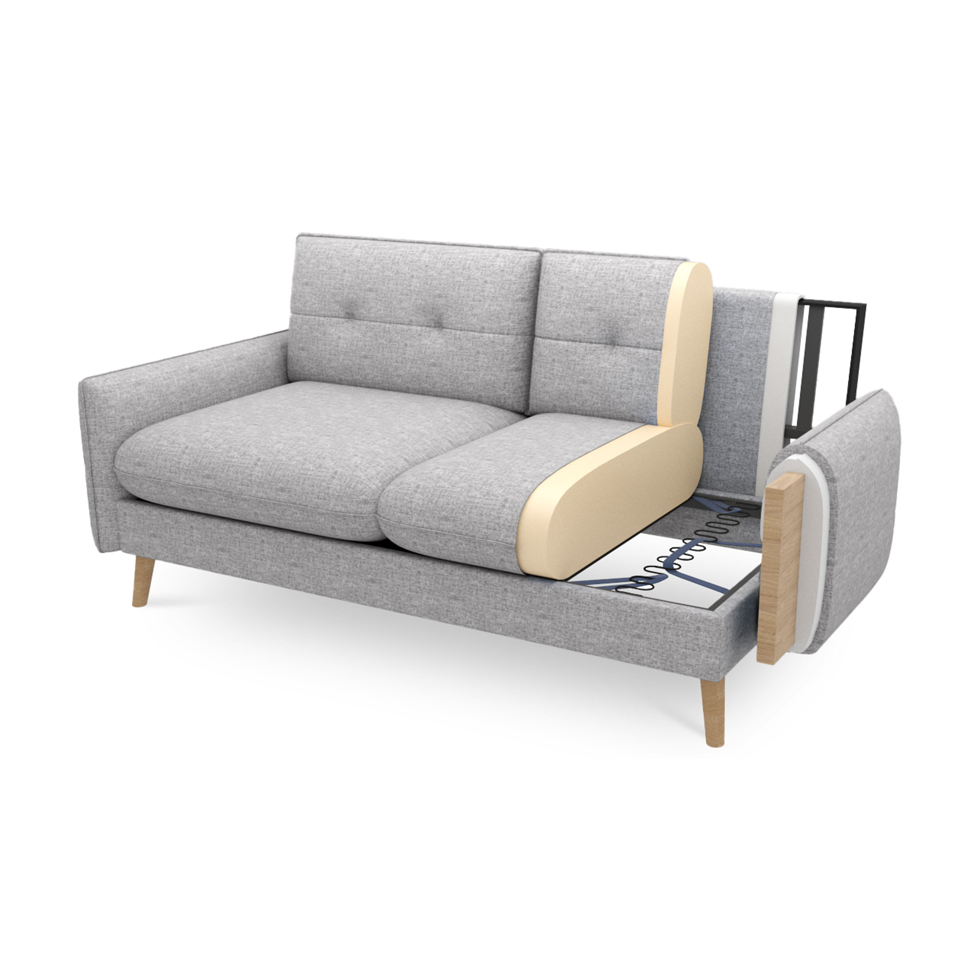Élégance scandinave intemporelle Style intemporel du dossier capitonné Pieds naturels en bois d'hévéa |
