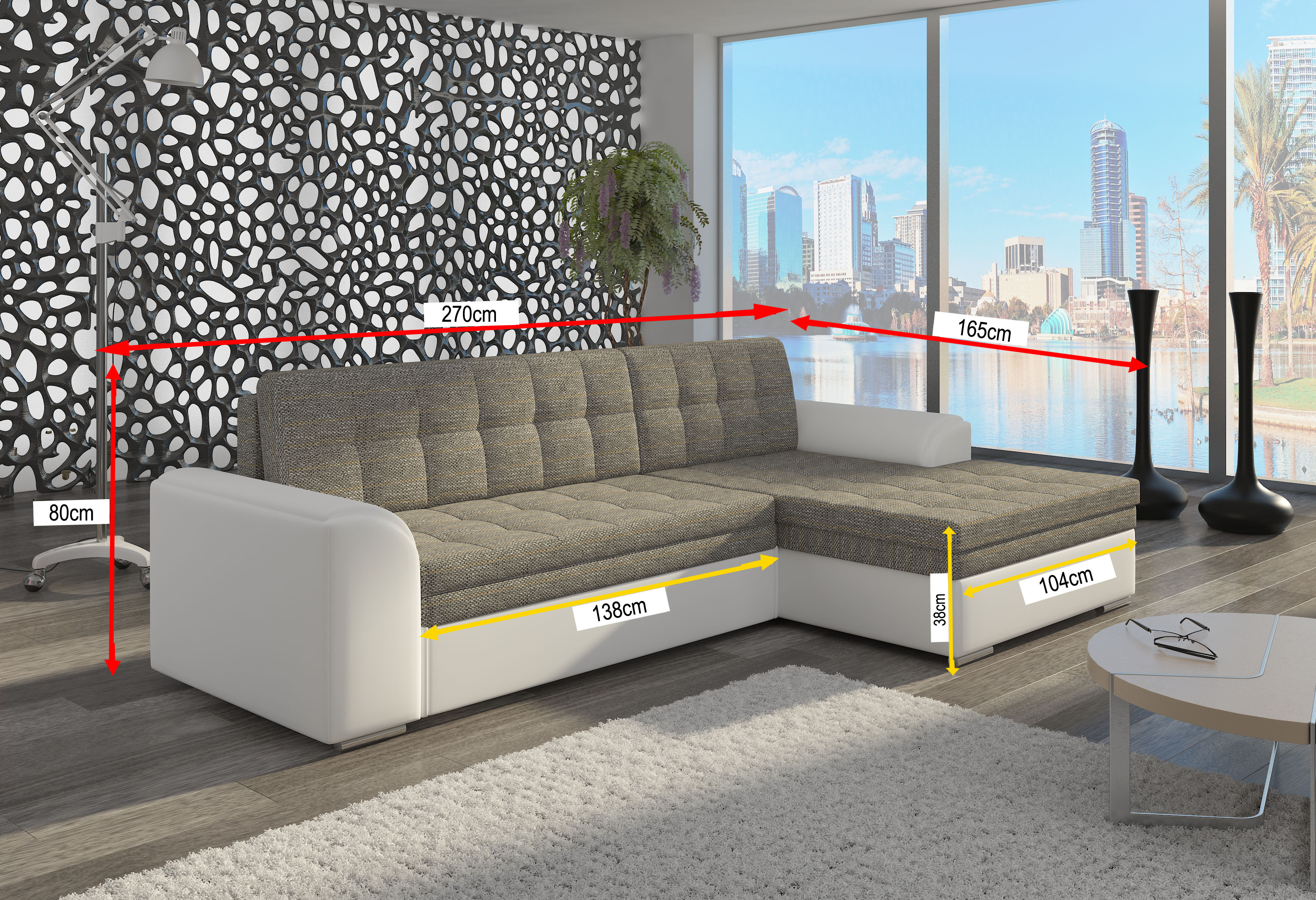 | Libellé | Canapé angle droit convertible tissu gris chiné Kapitona 270cm |