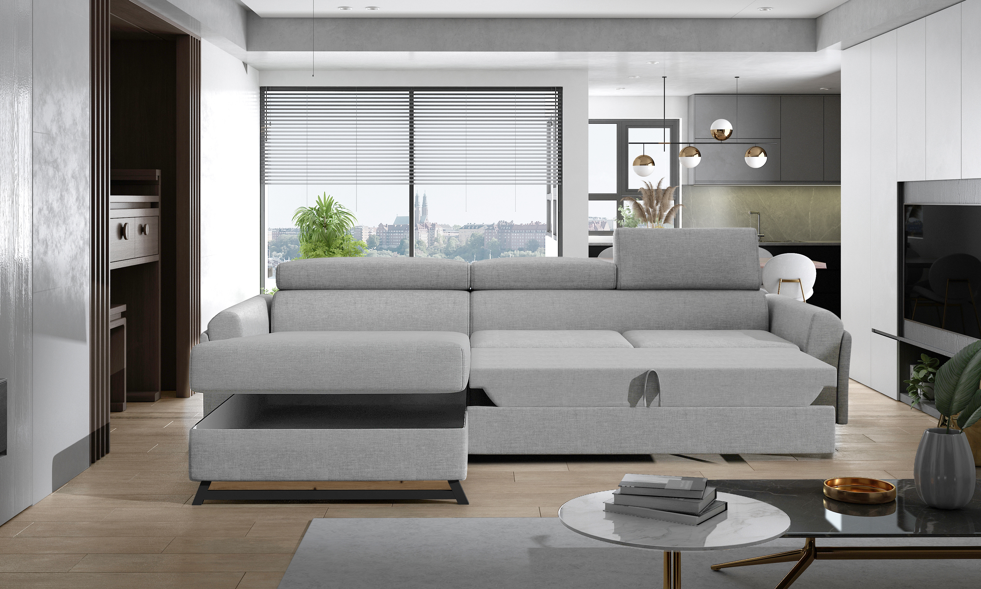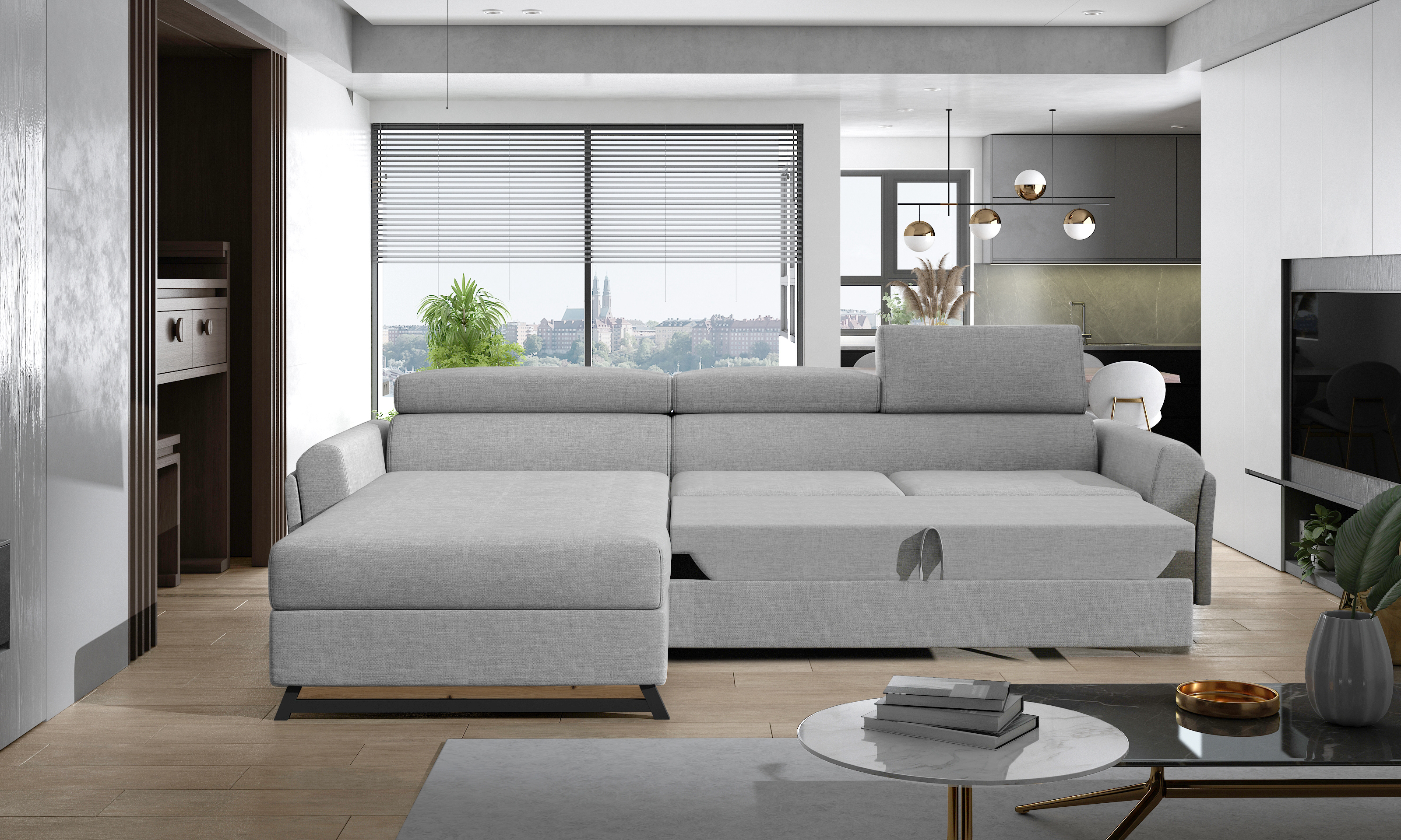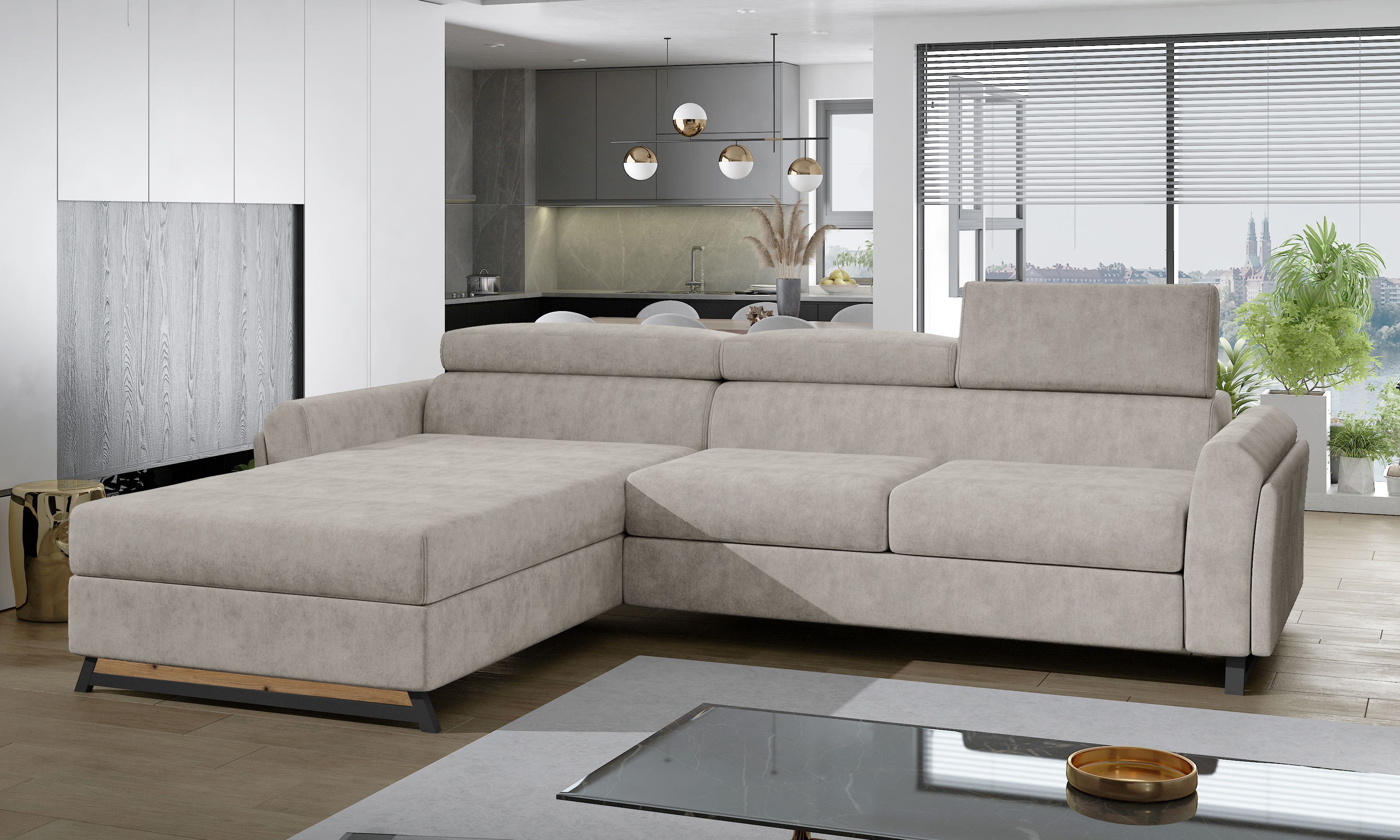 | Libellé | Canapé angle gauche convertible tissu beige avec appuis-tête réglables Mazerali 300cm |