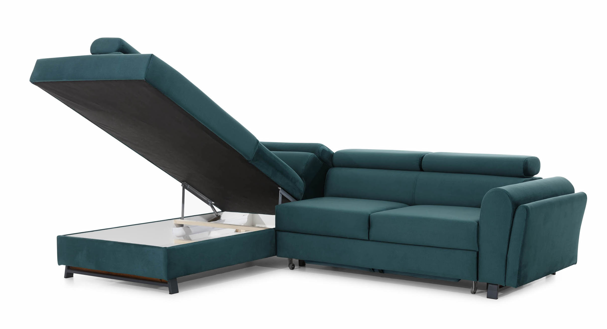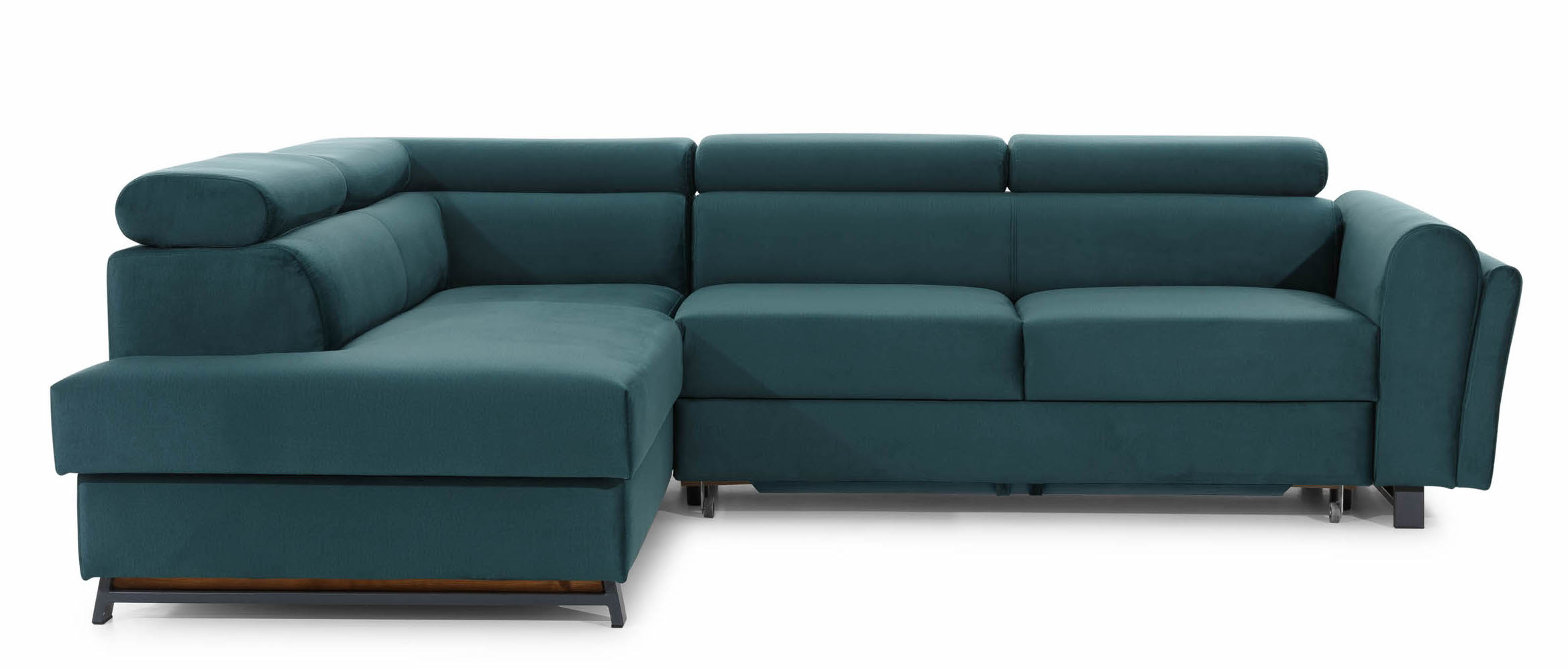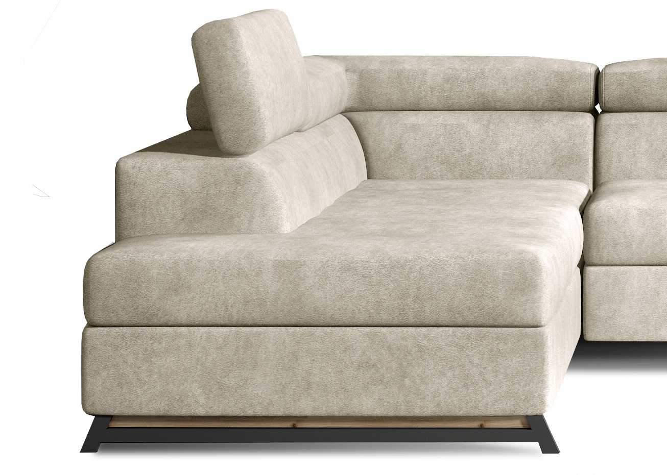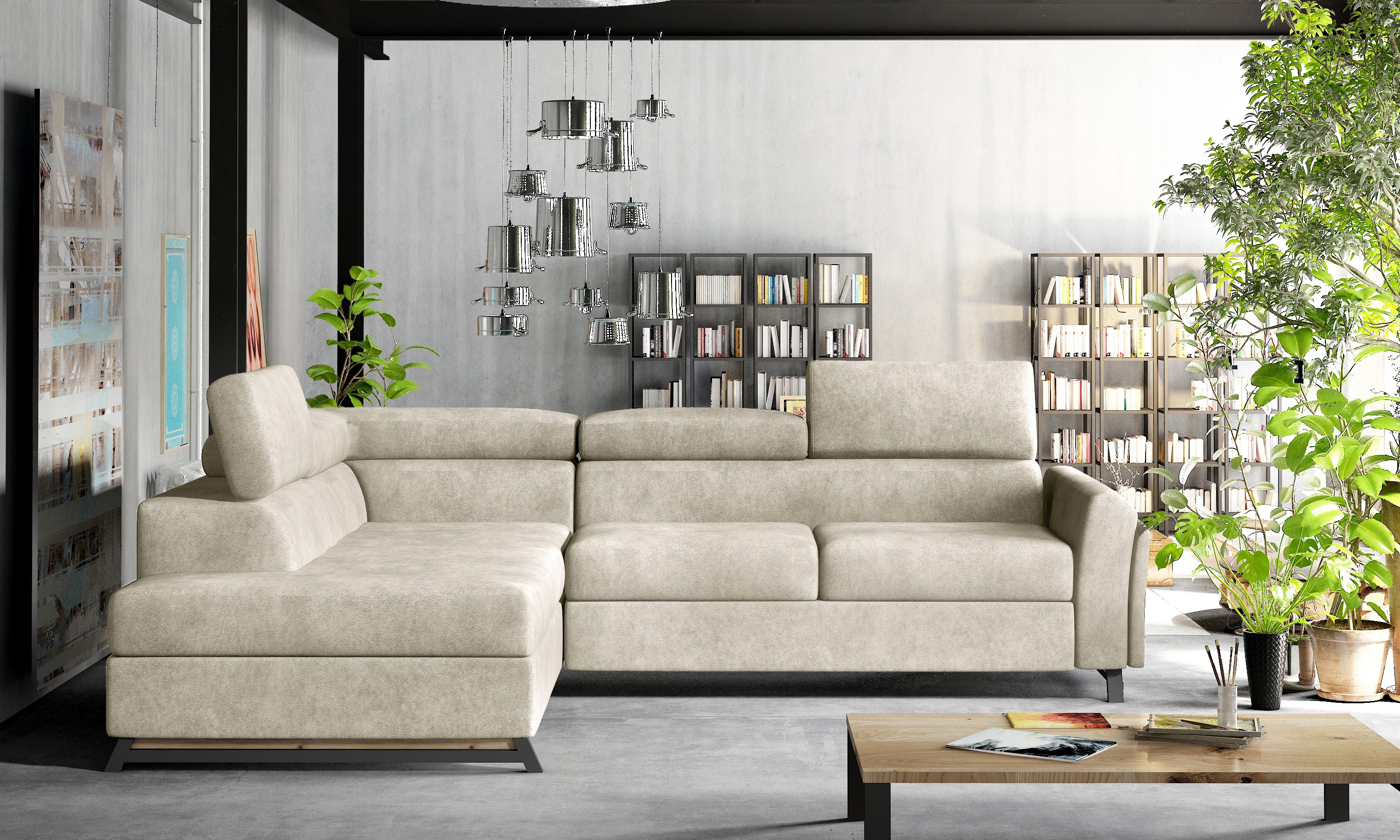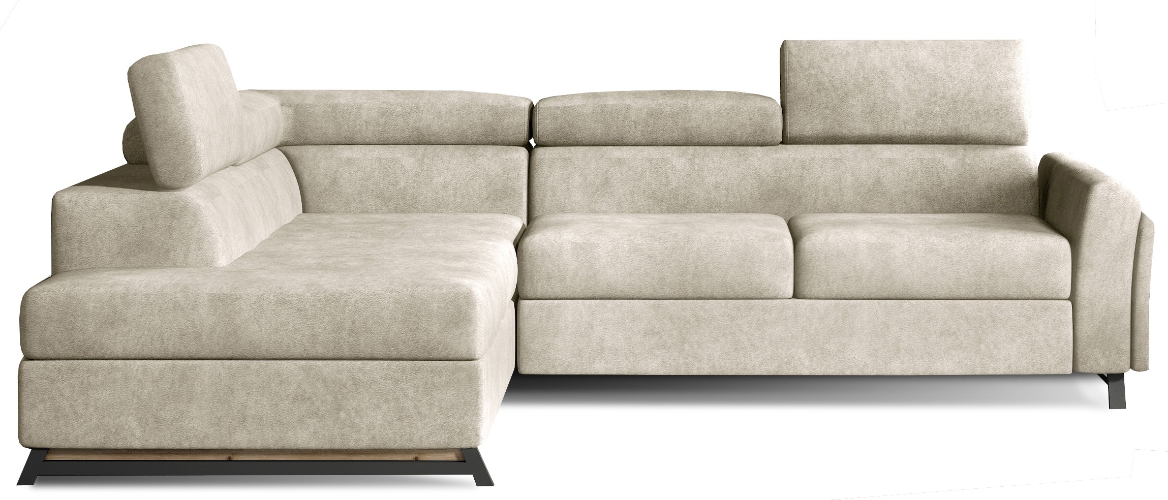 Libellé Canapé angle gauche convertible tissu beige avec têtières réglables Nikos 265cm