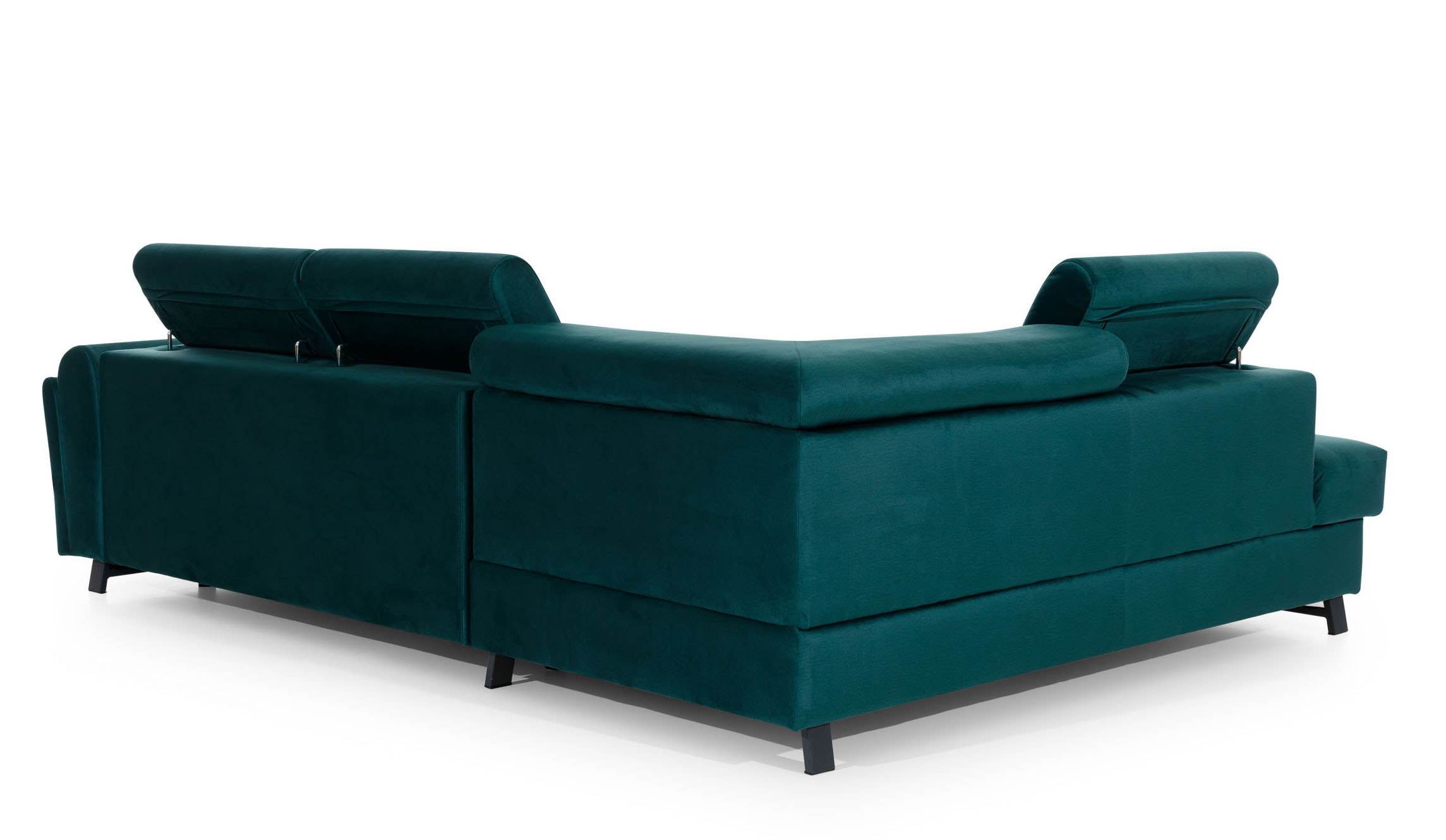 Canapé angle gauche convertible tissu beige avec têtières réglables Nikos 265cm