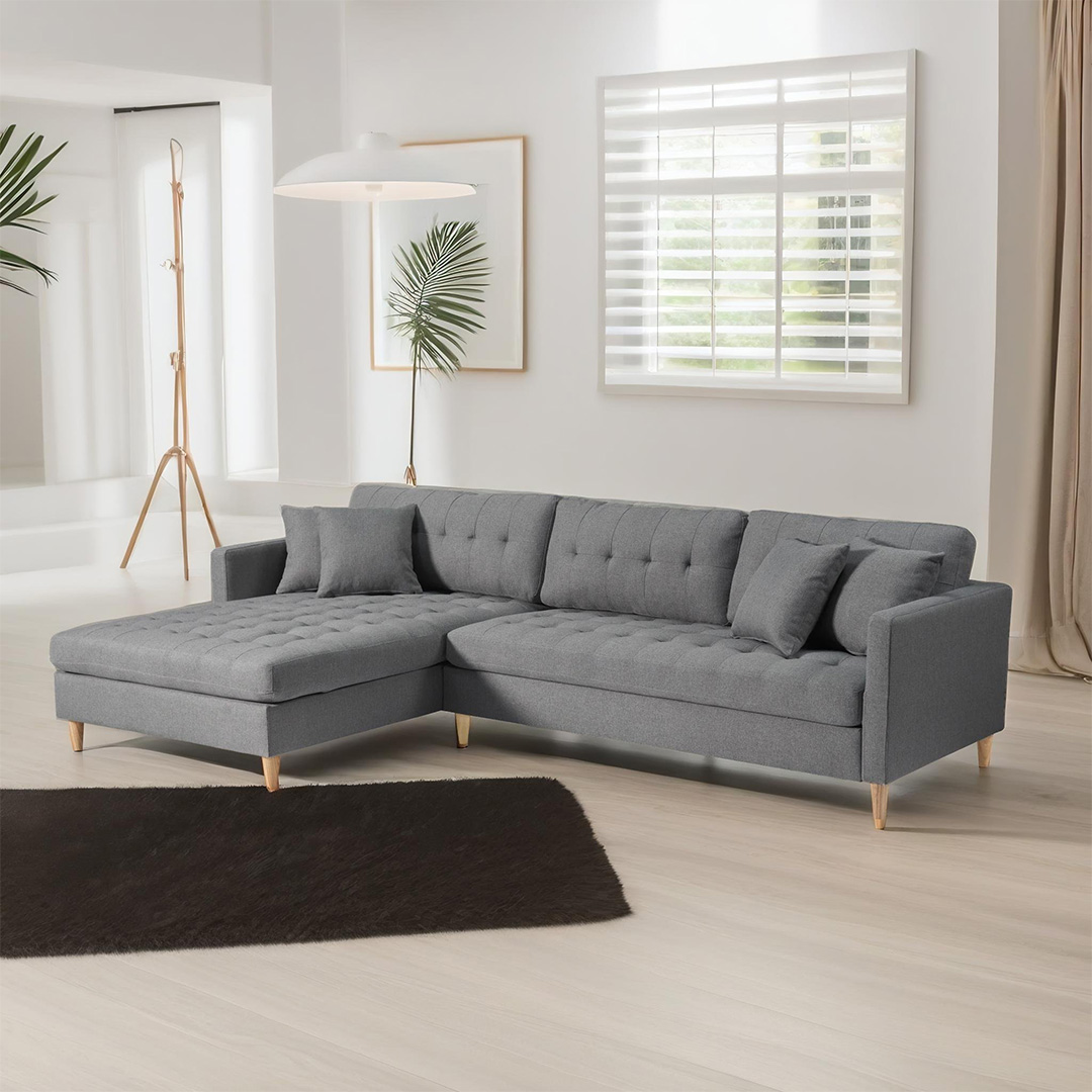 Canapé méridienne Marino Deluxe orienté à droite ou à gauche incl. coussin tissu gris est un canapé de couleur grise qui apporte à la fois style et fonctionnalité à votre maison. coussins tissu gris. Ce produit est créé avec un souci du détail, ce qui garantit à la fois un attrait esthétique et une grande durabilité. Il est conçu dans un souci à la fois de fonctionnalité et de style, ce qui en fait le choix parfait pour n’importe quelle pièce de votre maison. Les matériaux utilisés sont de haute qualité, ce qui confère au produit une longue durée de vie et lui permet de résister à une utilisation quotidienne. Que ce soit pour le rangement ou comme ajout décoratif, ce produit rehaussera votre décor et apportera plus de confort et d'élégance à votre maison.
