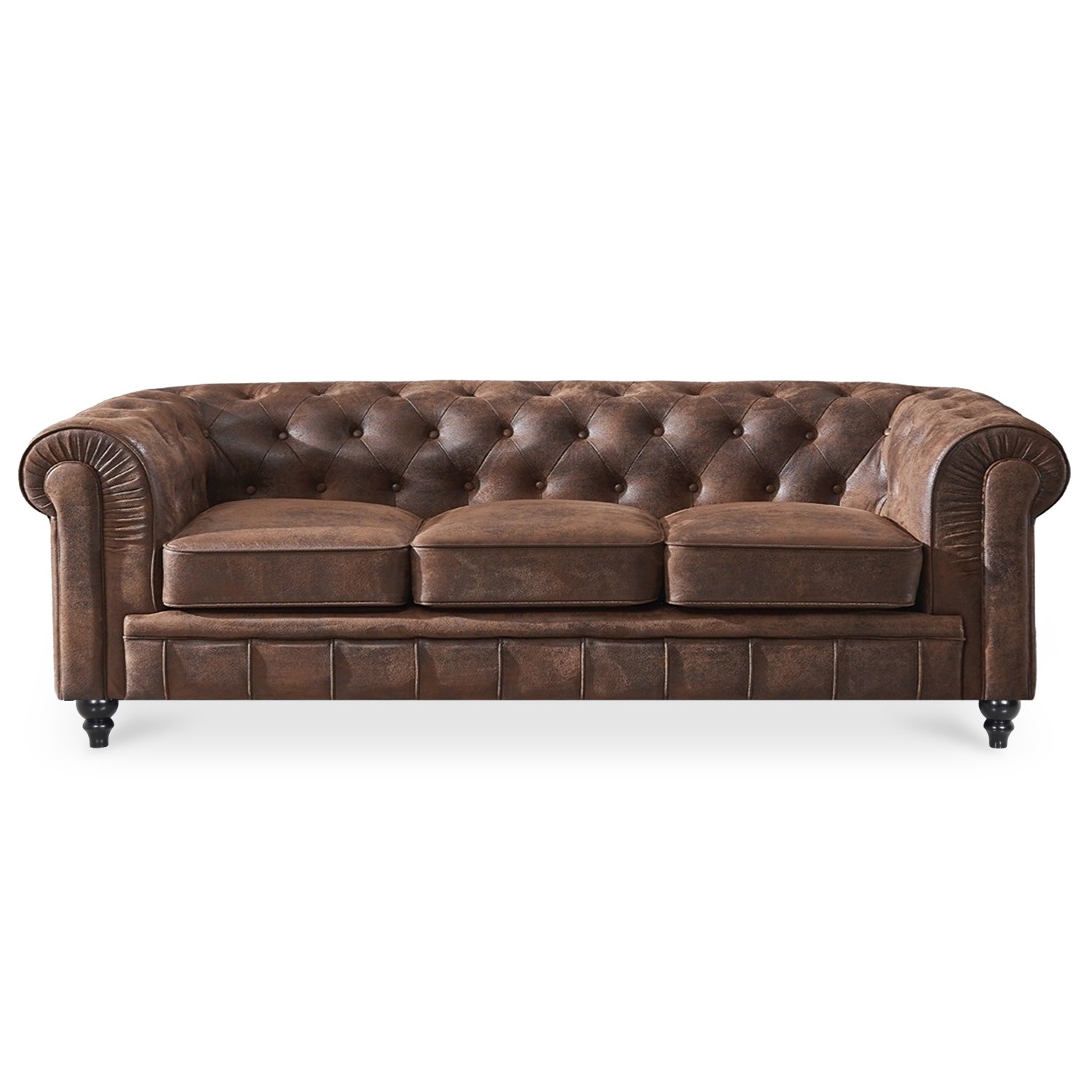Le Chesterfield vintage est le canapé 3 places parfait pour donner à votre pièce de vie des airs de salon anglais du XVII ème siècle. Avec ses accoudoirs larges et son matelassage en losange, ce canapé capitonné aux lignes travaillées devient une pièce maîtresse de la maison : il confère une atmosphère chaleureuse et unique à votre espace de vie. Les petits pieds en bois qui le rehaussent apportent équilibre et légèreté à ce modèle de caractère. Son assise droite et ses accoudoirs larges seront très appréciés des amateurs de canapés robustes. Il donne incontestablement envie de s'y prélasser et de partager de bons moments entre amis ou en famille.