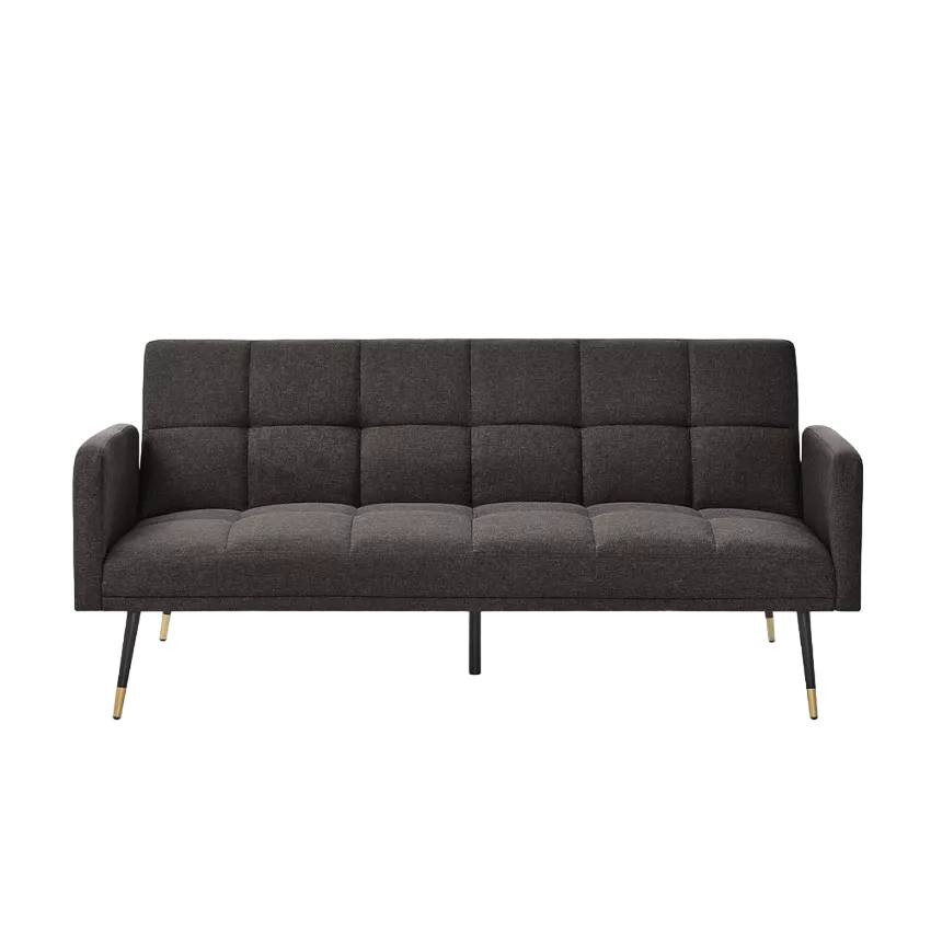 Linéaire, pratique et moderne, le Canapé clic-clac 3 places robuste au design moderne offre une solution immédiate pour un sommeil paisible ou un espace d'accueil pour vos invités. Confortable pour une utilisation quotidienne, il s'adapte à tous les espaces, grands ou petits. L'assise généreusement rembourrée, avec ses accoudoirs, assure un confort optimal pour ce merveilleux canapé clic-clac. Disponible en gris ou en marron, son revêtement en tissu ajoute une touche d'élégance, soutenue par des pieds en métal noir avec des détails dorés. Profitez de la livraison gratuite et recevez dans votre salon gratuitement le Canapé clic-clac 3 places robuste au design moderne.