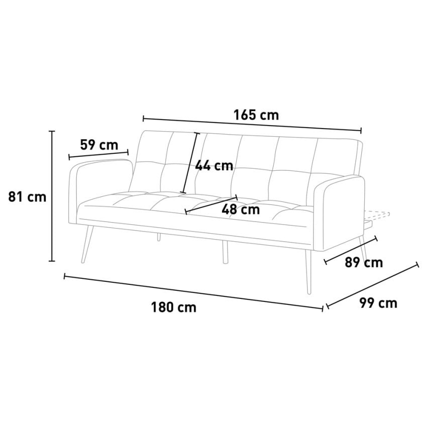 - Dimensions du lit avec dossier abaissé : 165x99x42 cm (LxPxH)