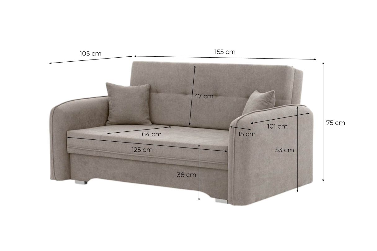 Banquette : 155 × 105 × 75 cm ? un format conçu pour s'adapter aux pièces à surface limitée, tout en offrant une assise généreuse pour deux personnes.