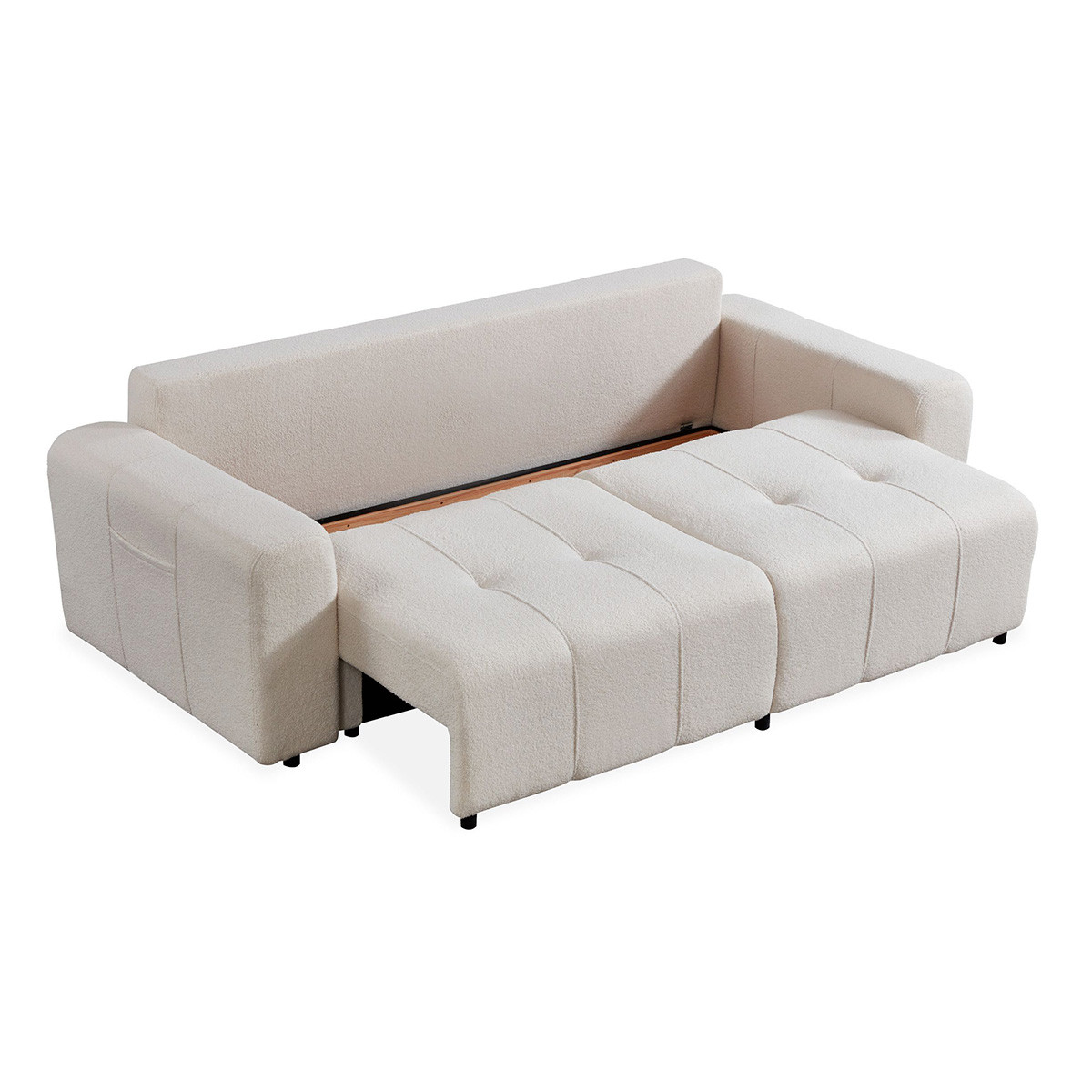 Canapé Convertible 3 Places Bouclette "Amos" 239cm Crème