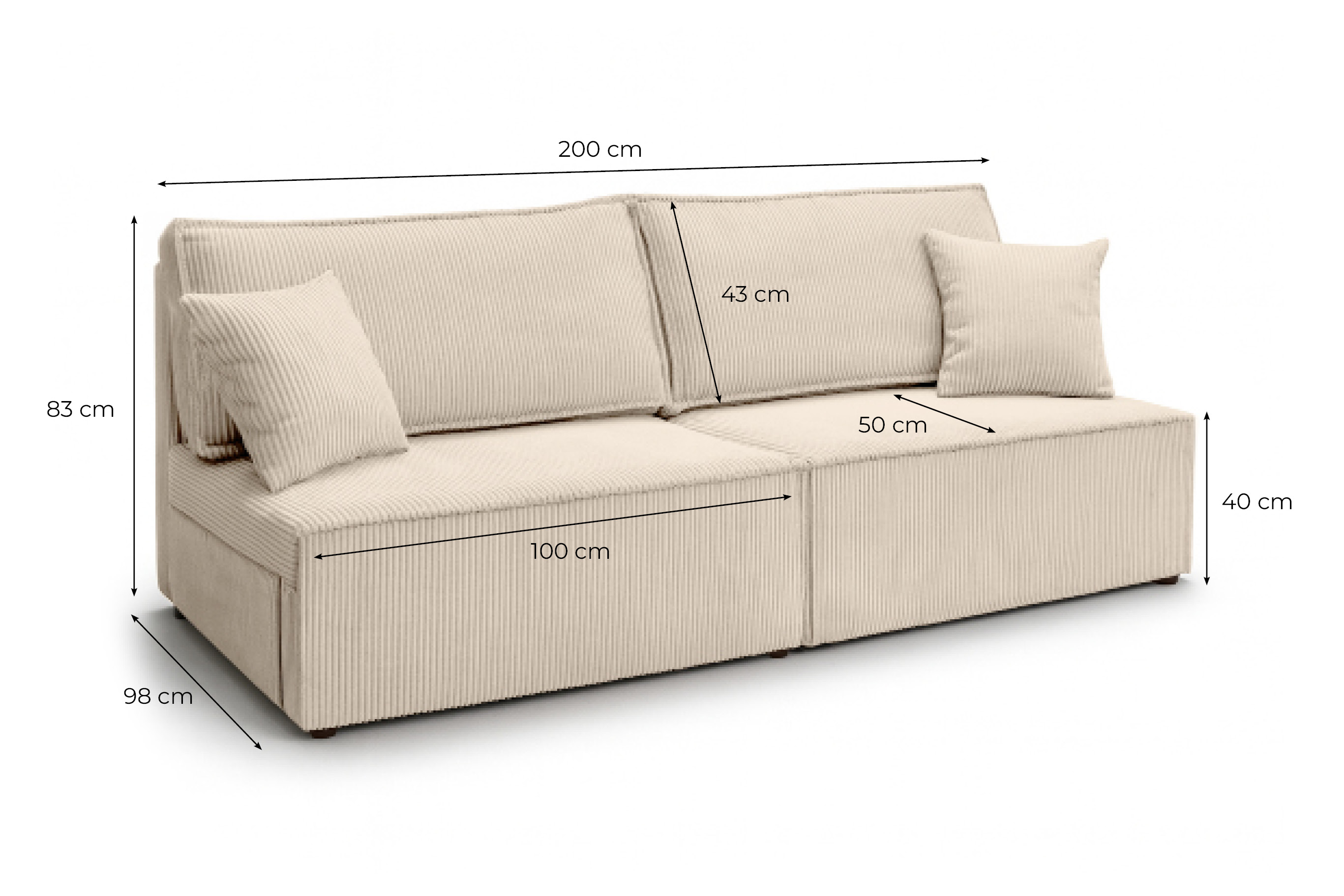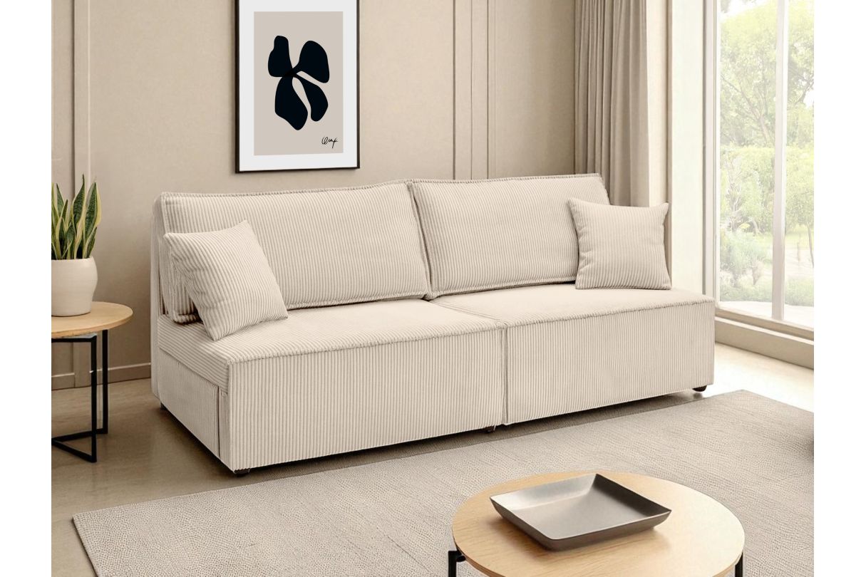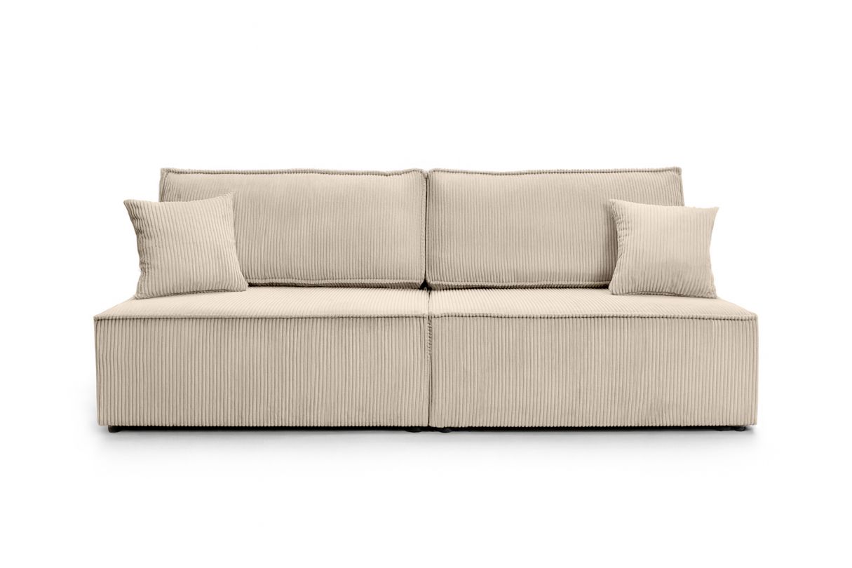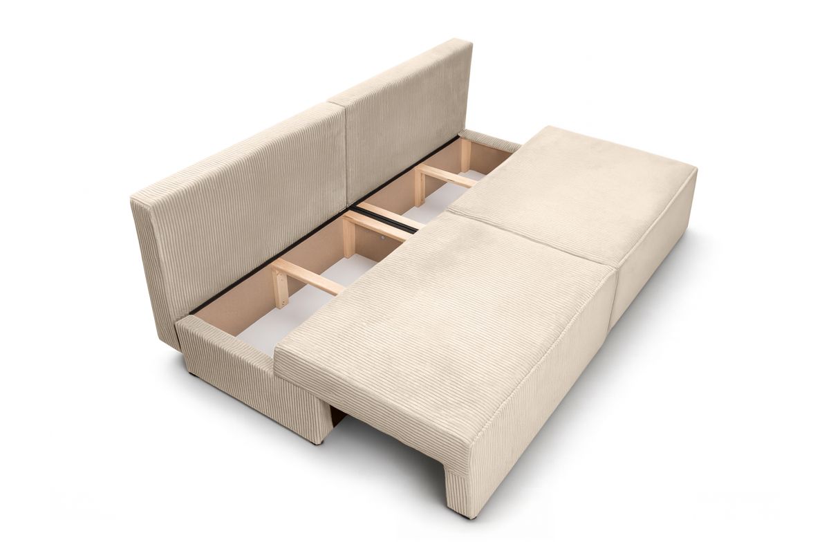 Canapé convertible 3 places FIONA sans accoudoirs coffre de rangement velours côtelé - Beige