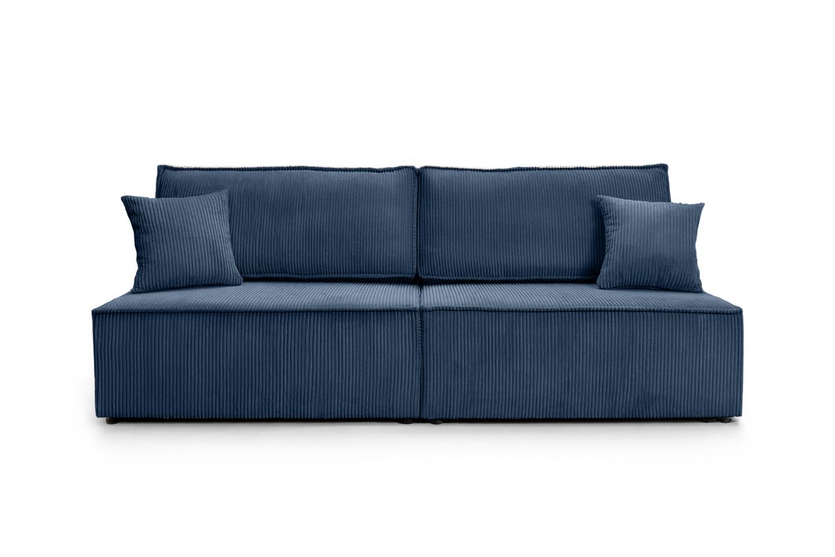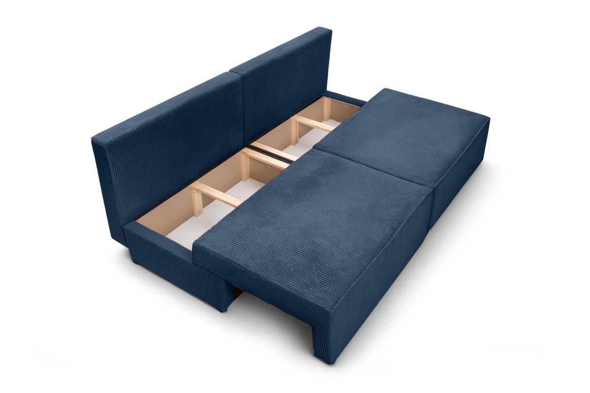 Canapé convertible 3 places FIONA sans accoudoirs coffre de rangement velours côtelé - Bleu foncé