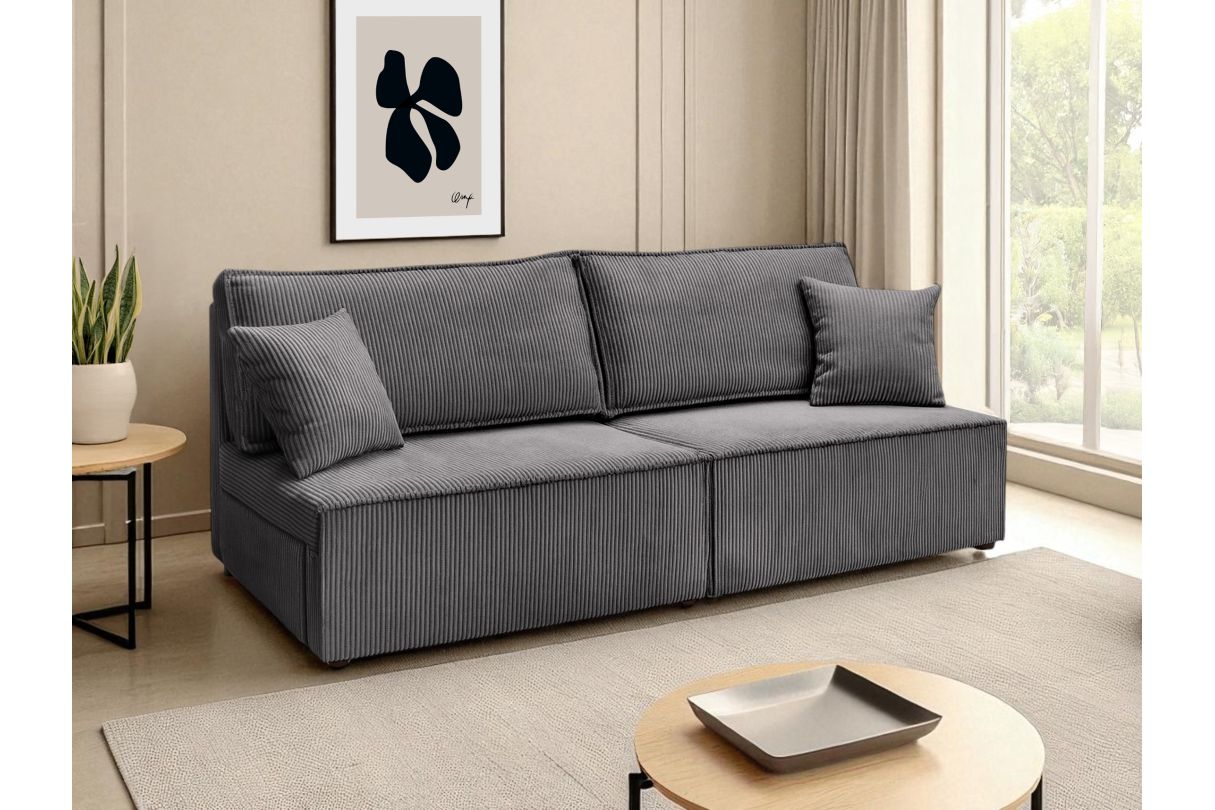 | Libellé | Canapé convertible 3 places FIONA sans accoudoirs coffre de rangement velours côtelé - Gris foncé |