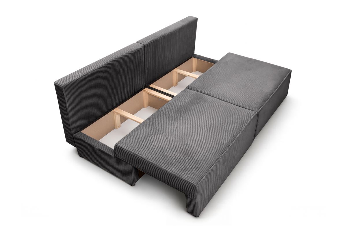 FIONA Canapé droit convertible 3 places sans accoudoirs avec coffre de rangement en velours côtelé