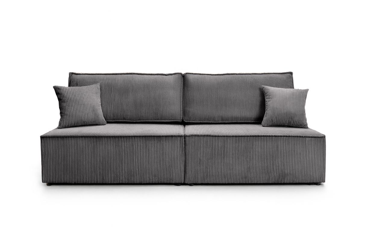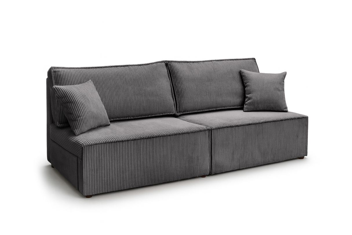 Canapé convertible 3 places FIONA sans accoudoirs coffre de rangement velours côtelé - Gris foncé