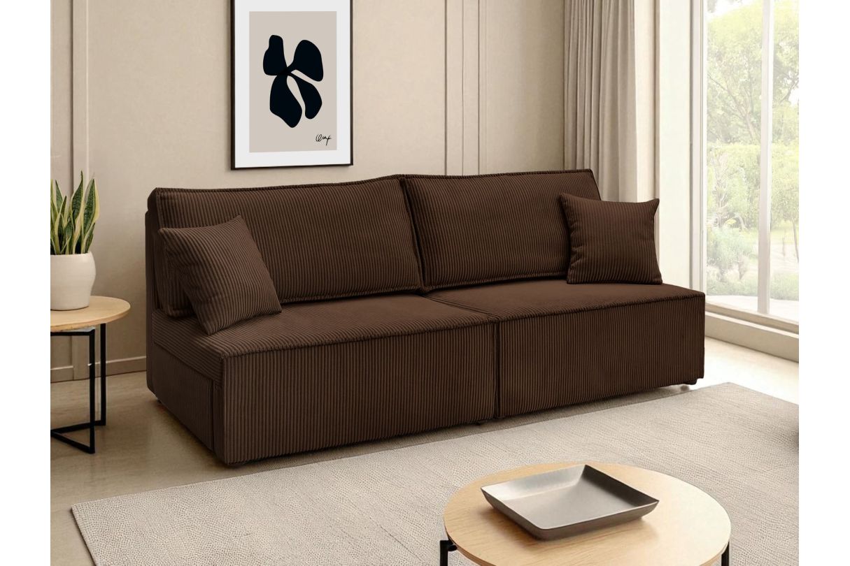 Canapé convertible 3 places FIONA sans accoudoirs coffre de rangement velours côtelé - Marron