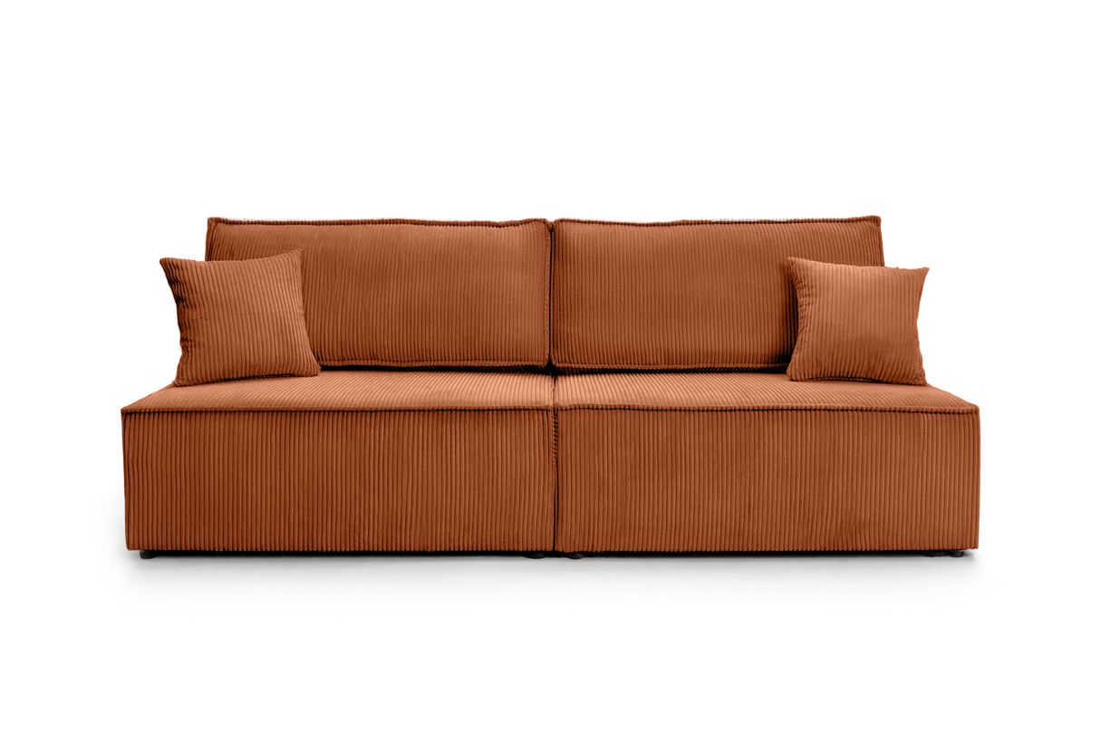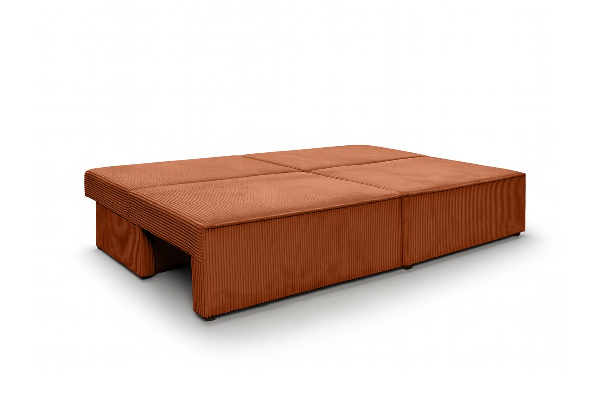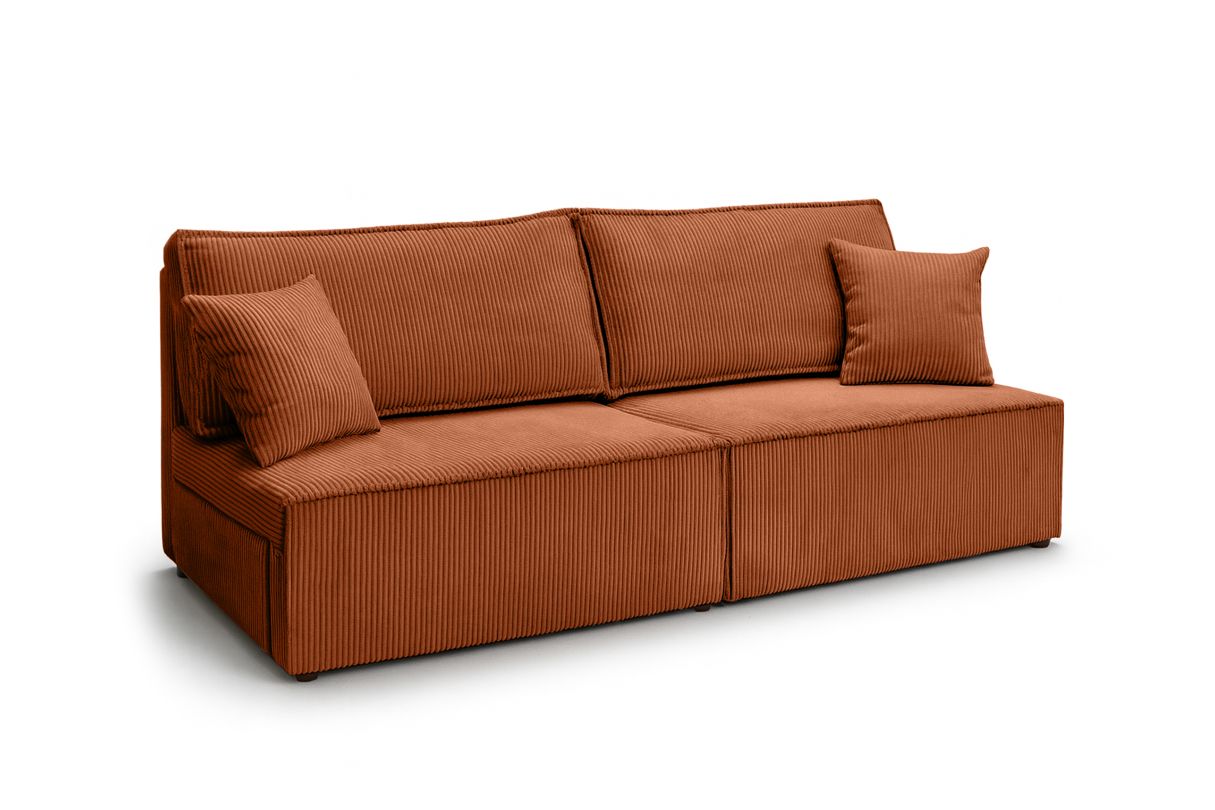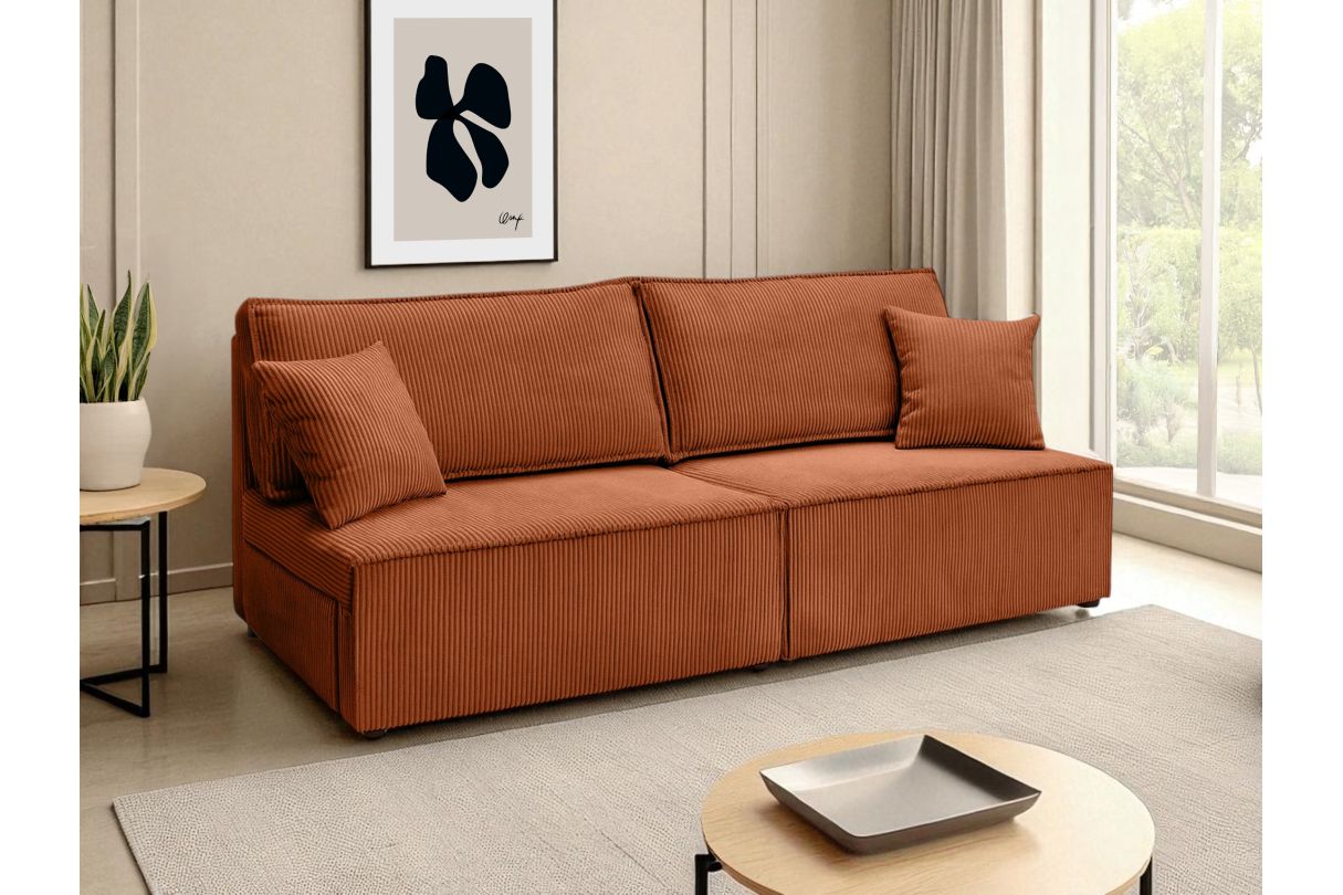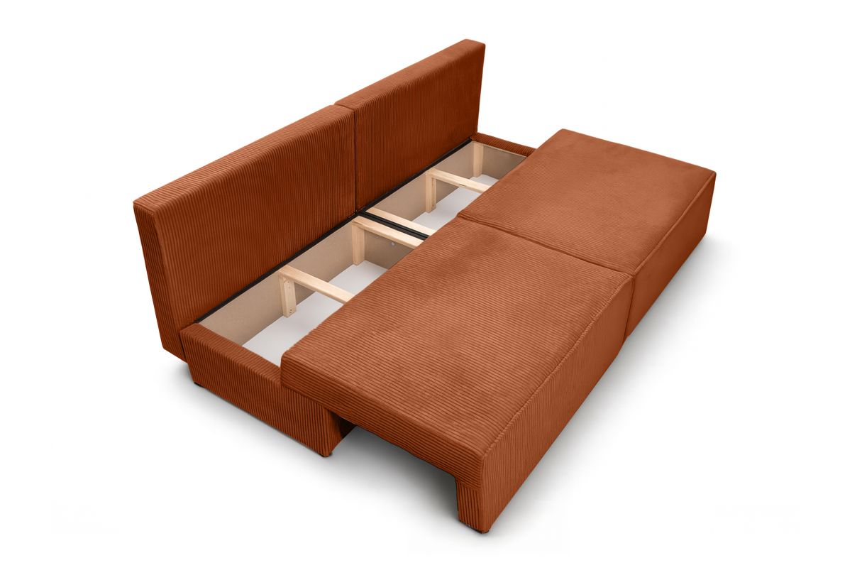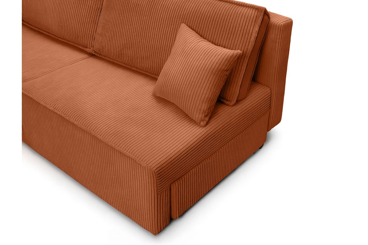 Canapé convertible 3 places FIONA sans accoudoirs coffre de rangement velours côtelé - Terracotta