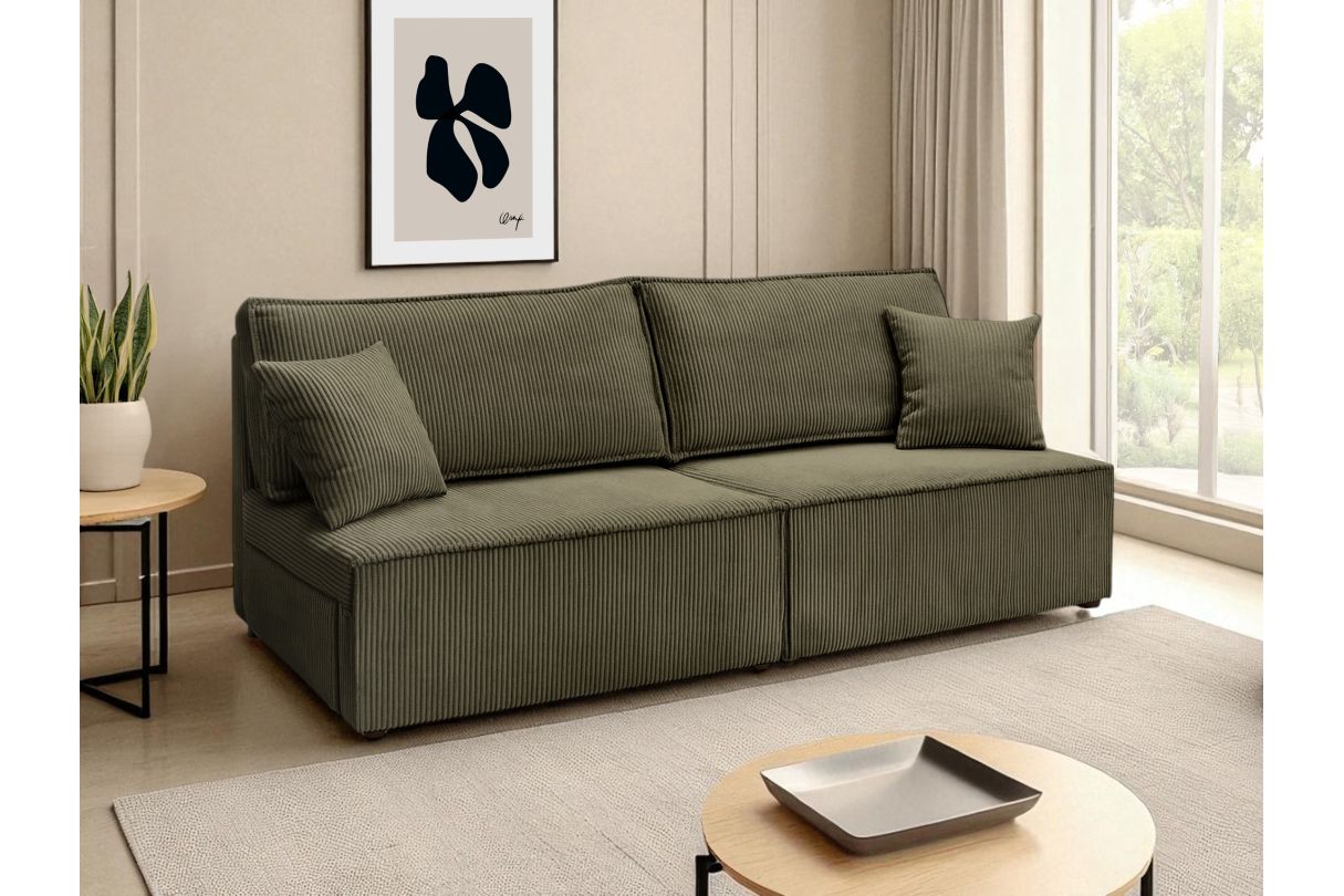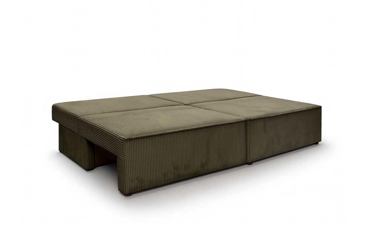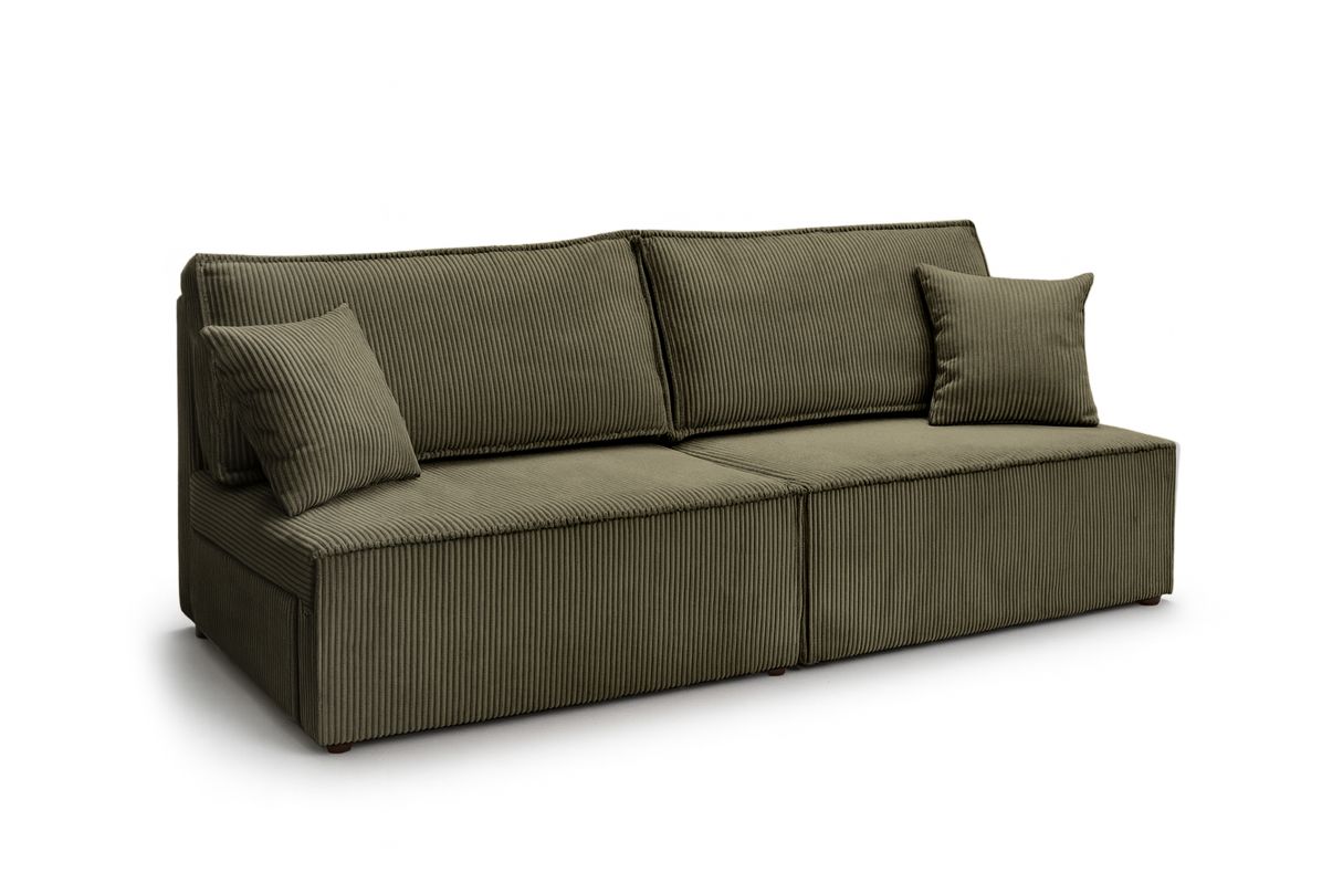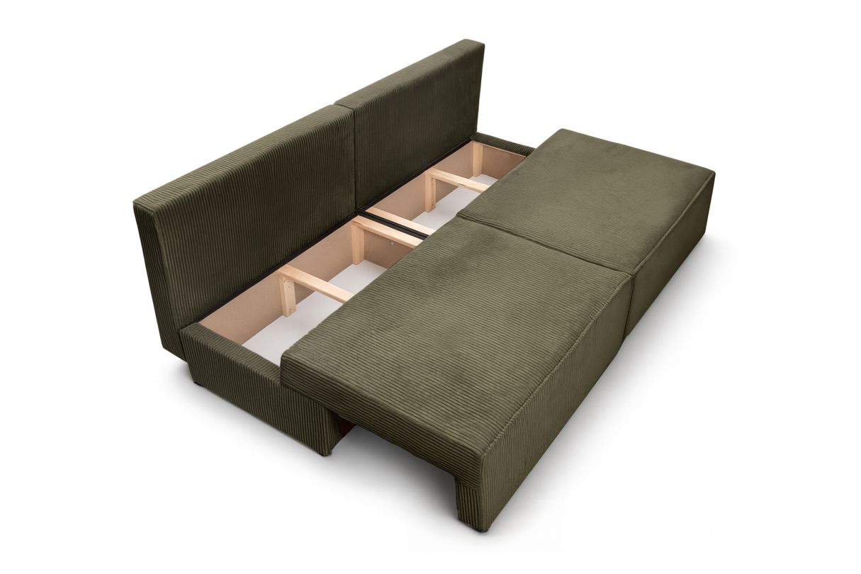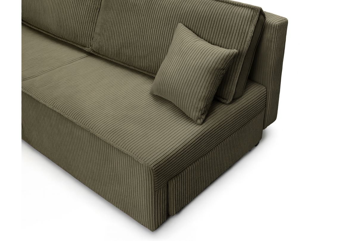 Canapé convertible 3 places FIONA sans accoudoirs coffre de rangement velours côtelé - Vert kaki