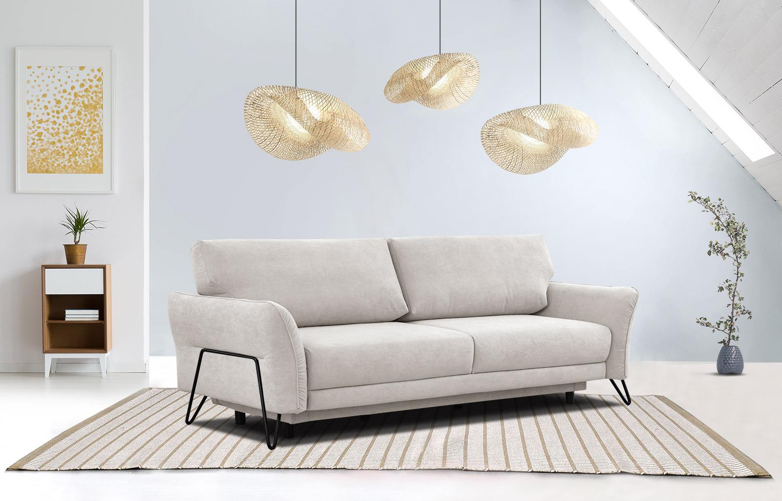 Voici un canapé exceptionnellement confortable et élégant qui s'intègre parfaitement à tout intérieur moderne. Doté d'une fonction convertible, il offre une grande surface de couchage pour deux personnes, idéale pour un usage quotidien ou pour accueillir des invités. De plus, avec son coffre de rangement intégré pour la literie, il offre un espace pratique pour stocker couvertures et oreillers, ce qui est très utile pour optimiser l'espace dans la maison. LOREM se distingue par son design moderne et industriel, qui ajoute du caractère à n'importe quelle pièce. Ses pieds métalliques non seulement ajoutent de la légèreté, mais confèrent également au canapé une élégance et un style uniques. Ainsi, LOREM n'est pas seulement un meuble, mais aussi un véritable élément de design pour votre salon ou votre chambre d'amis. LOREM n'est pas seulement un meuble, c'est aussi une manifestation de fonctionnalité et de style que vous ne pouvez pas ignorer. Offrez à votre maison une touche unique avec LOREM ! Dimensions: Longueur 237 cm Profondeur: 107 cm Hauteur: 93 cm Profondeur d’assise: 56 cm Dimensions de couchage: 193 cm x 147 cm