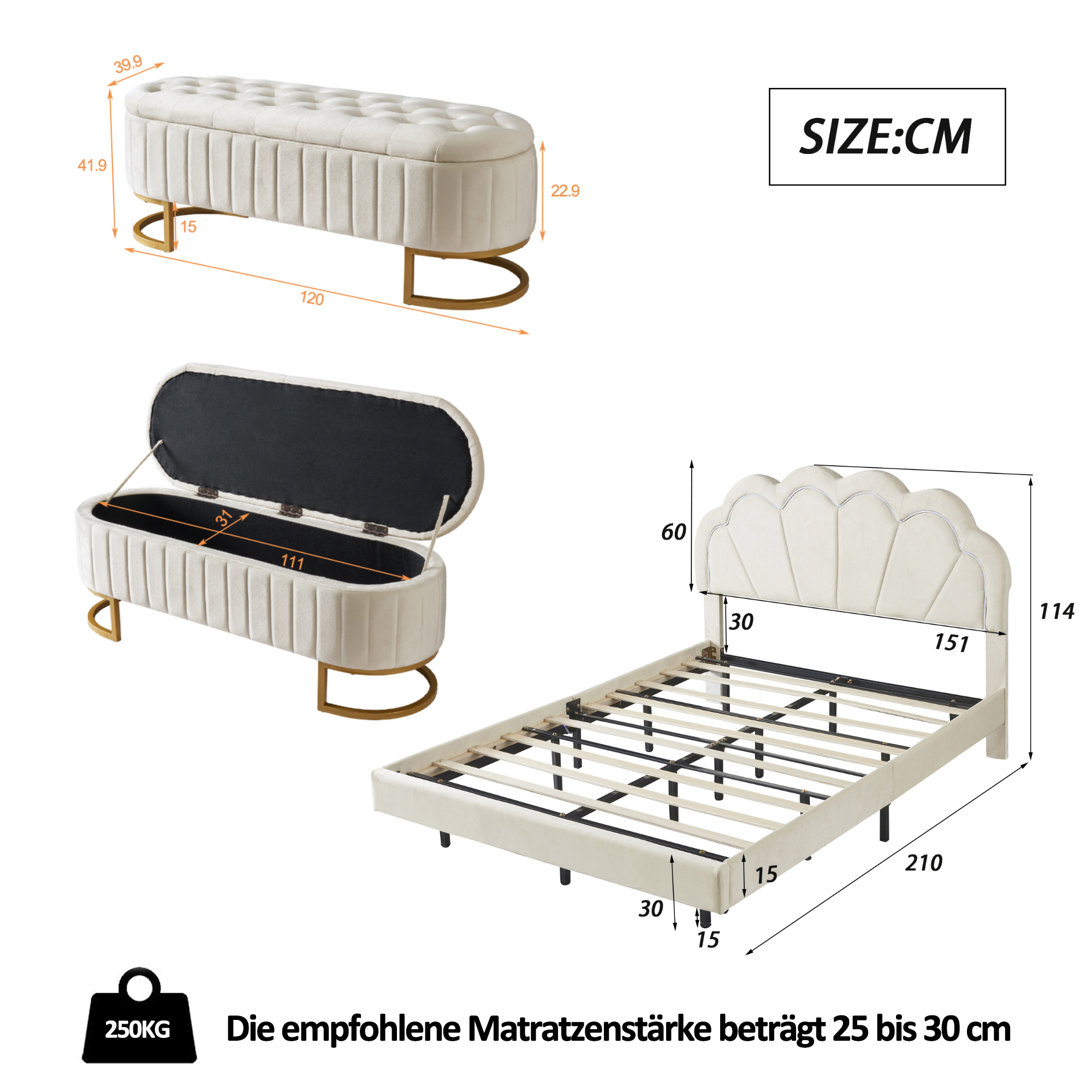 Matériau du produit: Tissu velours + contreplaqué + MDF
