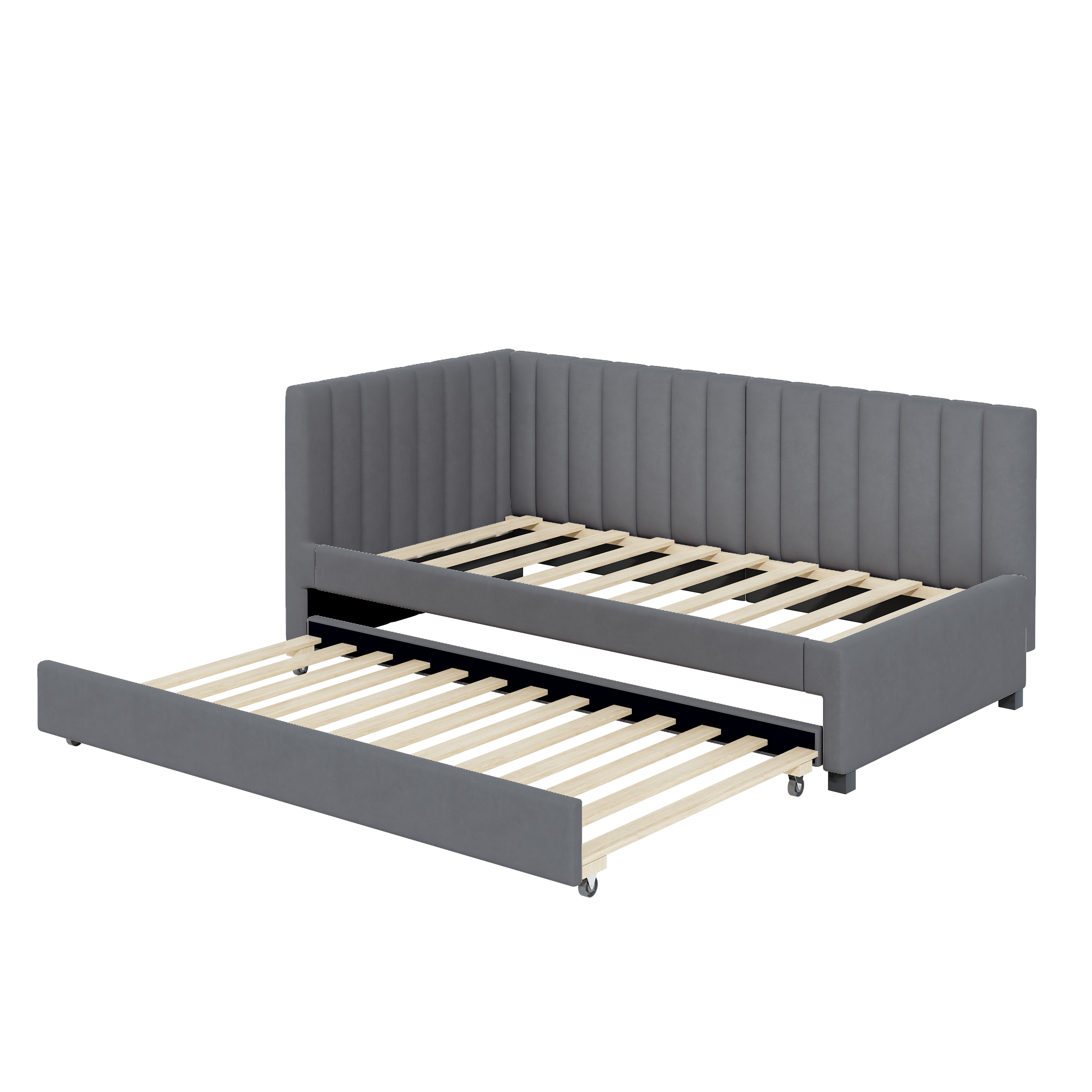 【Avec lit gigogne】: ce canapé - lit s'adapte non seulement à n'importe quel intérieur, mais a également un design intemporel. La tête de lit est faite de tissu doux qui assure le confort et le lit inférieur avec lit gigogne répond à vos différents besoins.