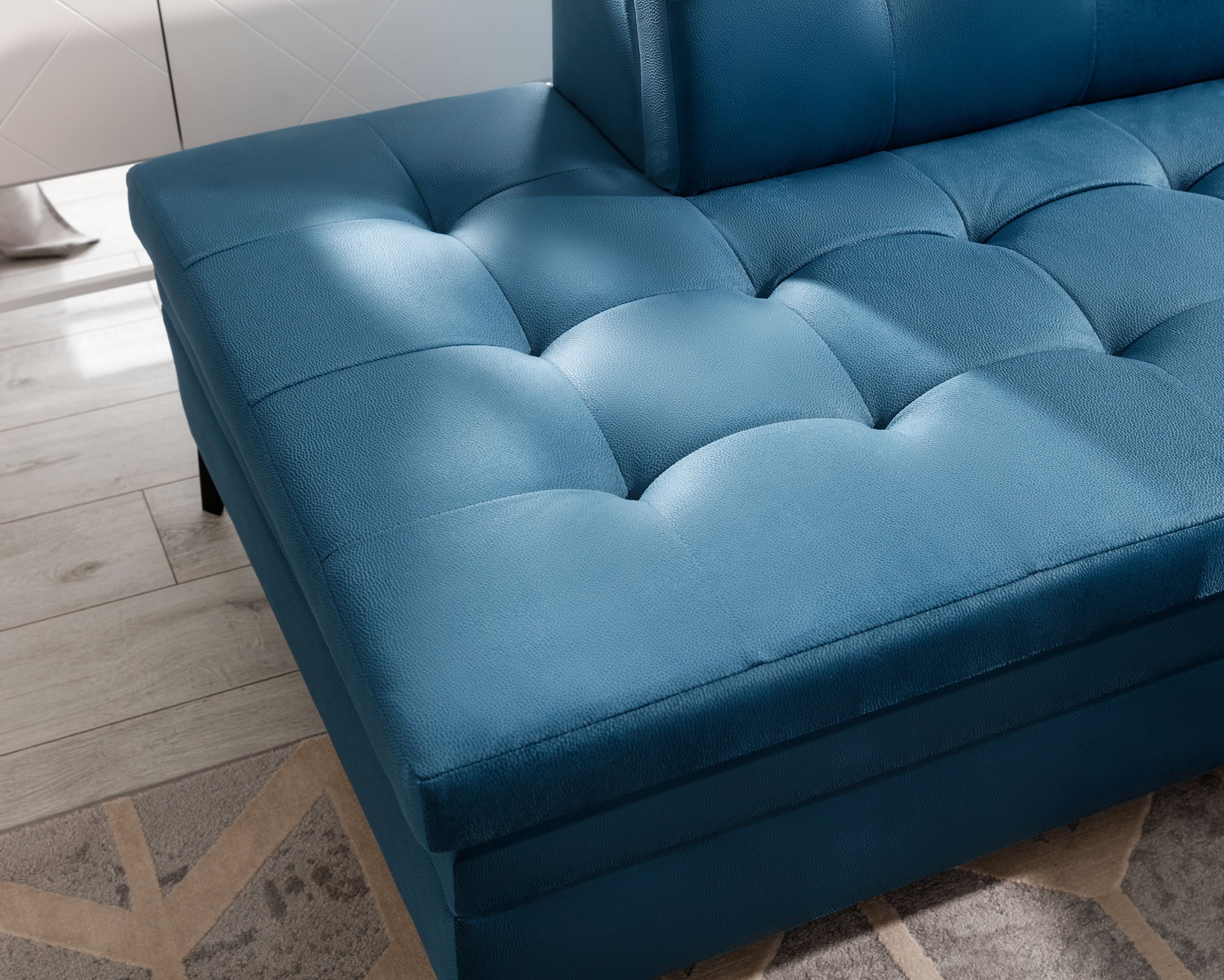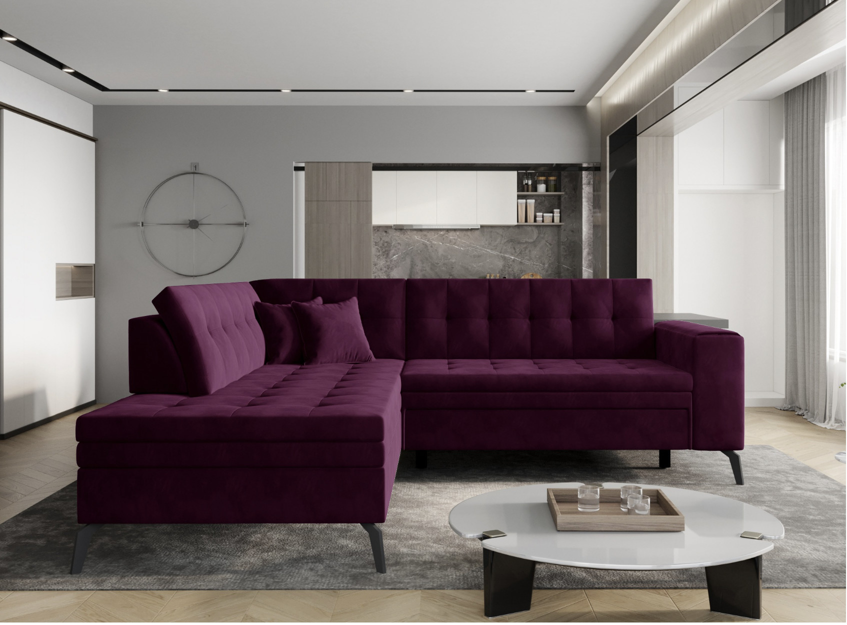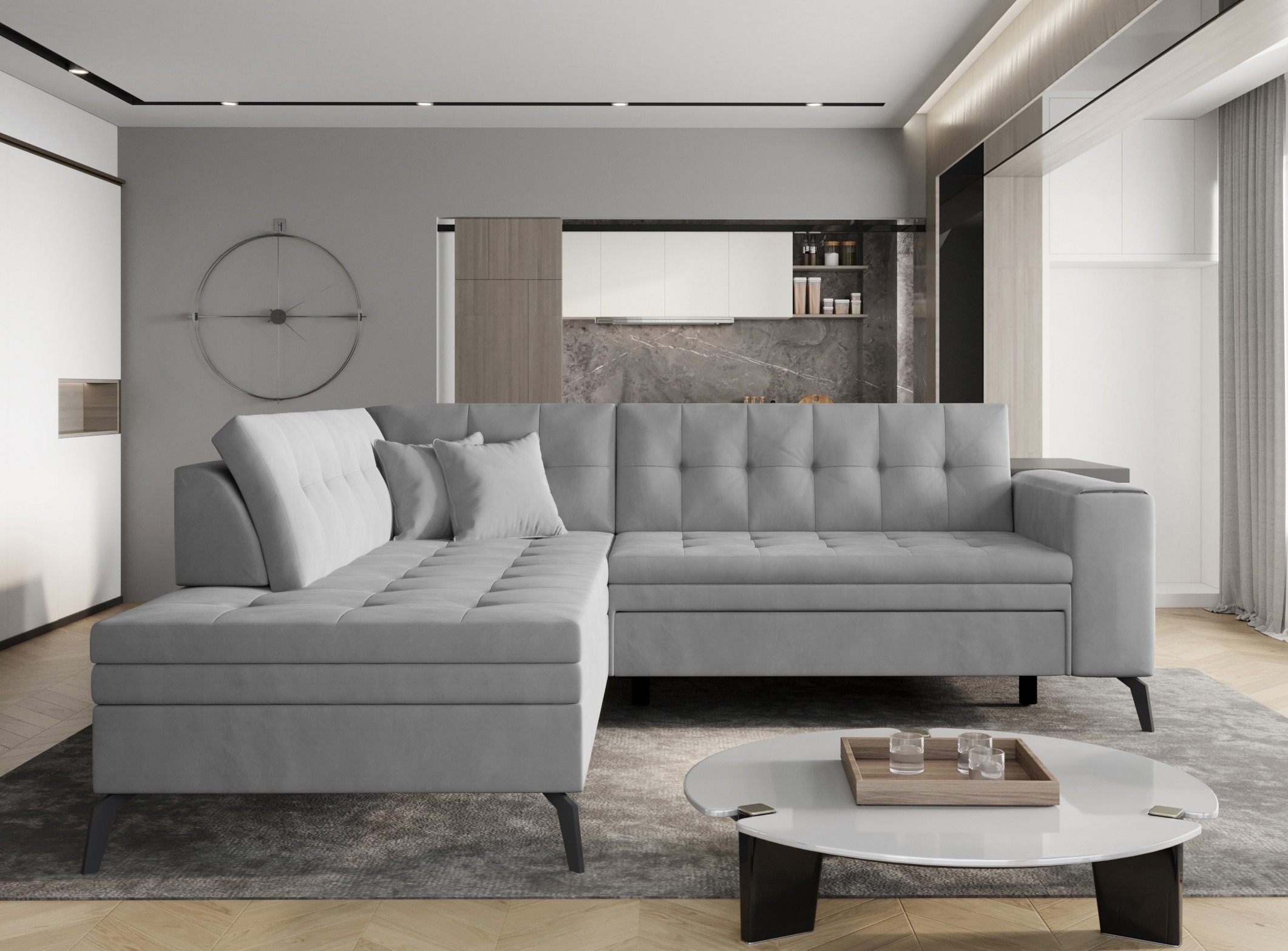 | Libellé | Canapé convertible capitonné angle gauche tissu doux brillant gris clair Larry 260cm |