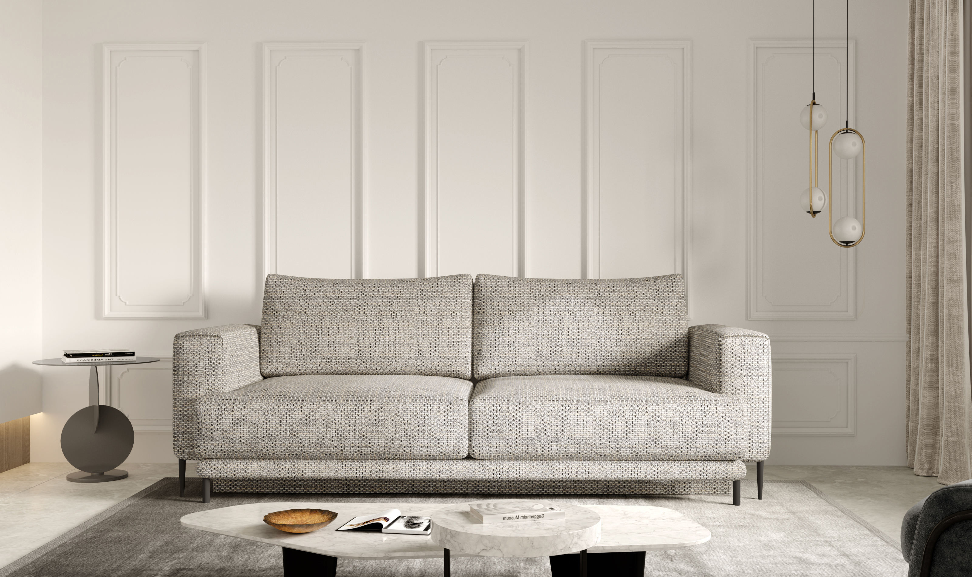 Offrez à votre salon une pièce maîtresse au design raffiné avec le canapé Davina. Son allure moderne et intemporelle, associée à un confort exceptionnel, en fait un choix idéal pour tous ceux qui recherchent à la fois style et fonctionnalité. Son revêtement en tissu haut de gamme apporte une douceur agréable au toucher et une résistance à l’usage quotidien, tout en sublimant votre intérieur. Un confort optimal et une polyvalence remarquable Avec ses dimensions généreuses (L 248 x P 84 x H 95 cm), le canapé Davina vous assure un confort optimal de jour comme de nuit. Grâce à son mécanisme de conversion DL, il se transforme en un lit spacieux (215 x 145 cm) en quelques secondes, idéal pour accueillir vos invités. Pensé pour le quotidien, ce canapé est aussi pratique qu’élégant. Son coffre de rangement intégré permet d’organiser aisément couettes, oreillers et autres accessoires, gardant ainsi votre espace ordonné et fonctionnel. Son assise et son dossier sont garnis d’une mousse HR et T25, garantissant un confort durable et évitant toute déformation au fil du temps. Caractéristiques techniques Modèle : Canapé droit 4 places – Convertible Coloris : Plusieurs coloris disponibles Dimensions du canapé : L 248 x P 84 x H 95 cm Profondeur d'assise : 53 cm (jusqu'à 79 cm avec coussins) Hauteur d'assise : 43 cm Hauteur accoudoirs : 68 cm Largeur accoudoirs : 24 cm Surface de couchage : 215 x 145 cm Hauteur des pieds : 12 cm Poids total : 98 kg Matériaux et finitions Revêtement : ✔ Tissu premium (100% polyester, 285 g/m²) ✔ Résistant à l’abrasion et aux taches ✔ Facile à entretenir : coussins amovibles et déhoussables ✔ Lavable en machine à froid (30°) ou à la main Structure : Bois massif et panneau de particules Densité et confort : ✔ Assise : Mousse polyester 25 kg/m³ HR ✔ Dossier et accoudoirs : 25 kg/m³ HR ✔ Rembourrage : Ressorts ondulés et mousse hautement élastique Pieds : Métal noir élégant et robuste Fabrication européenne – Garantie 5 ans Colisage ✔ Colis 1 : 212 x 84 x 64 cm – 76 kg ✔ Colis 2 : 84 x 55 x 50 cm – 22 kg Le canapé Davina allie esthétisme et ingéniosité pour vous offrir un espace de vie à la fois élégant, confortable et fonctionnel. Son design soigné et ses matériaux de qualité en font un choix incontournable pour sublimer votre intérieur. Option(s) sélectionnée(s) : - Couleur : Beige chiné