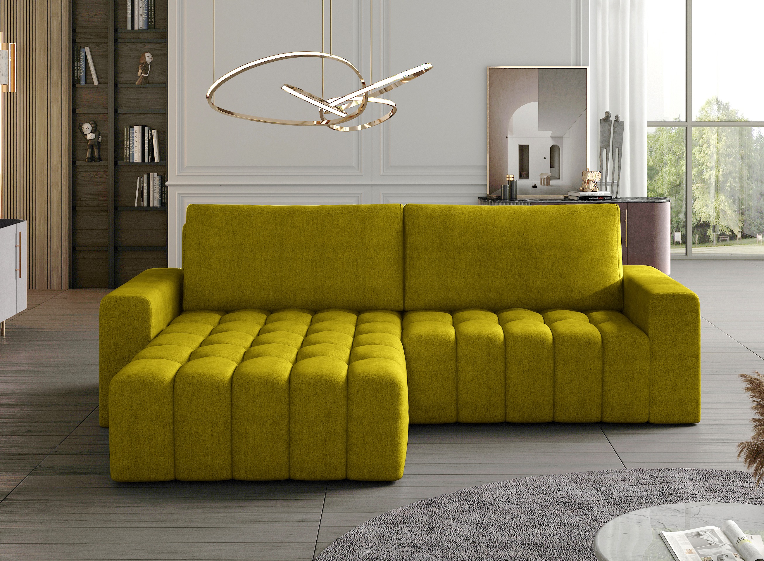 | Libellé | Canapé convertible design tissu matelassé jaune moutarde angle gauche Bozen 250cm |