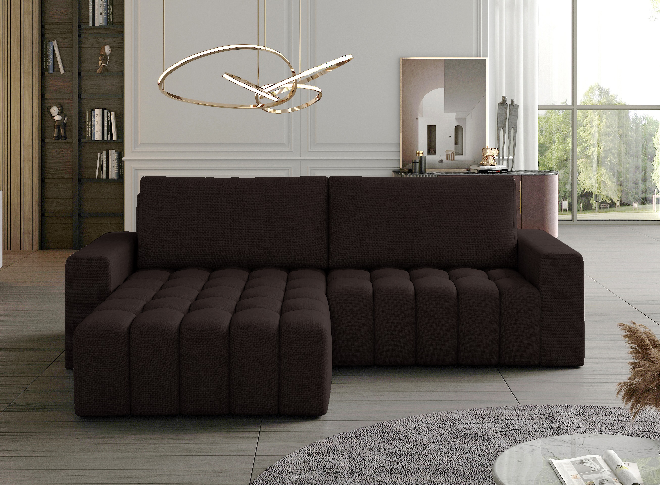 Canapé convertible design tissu matelassé marron angle gauche Bozen 250cm