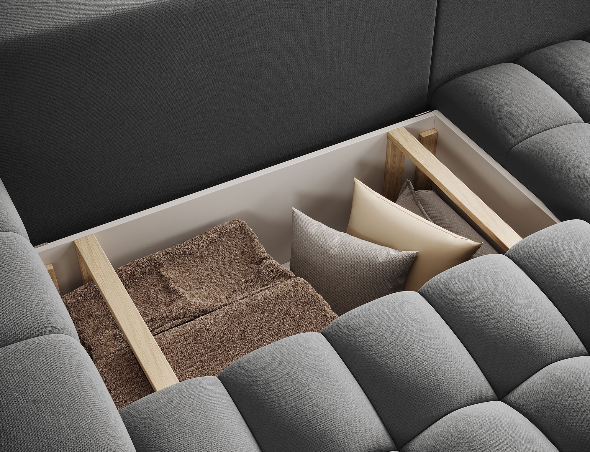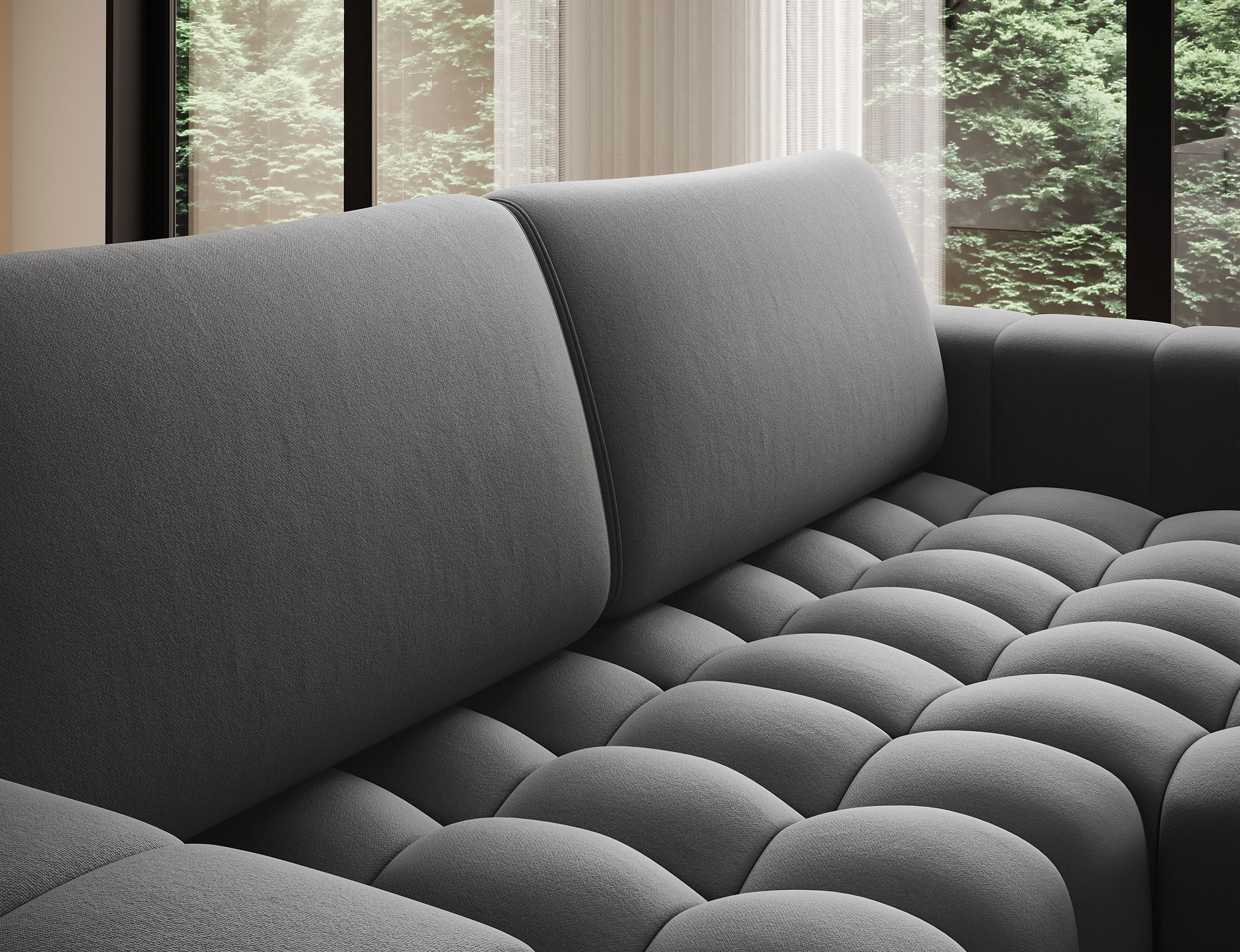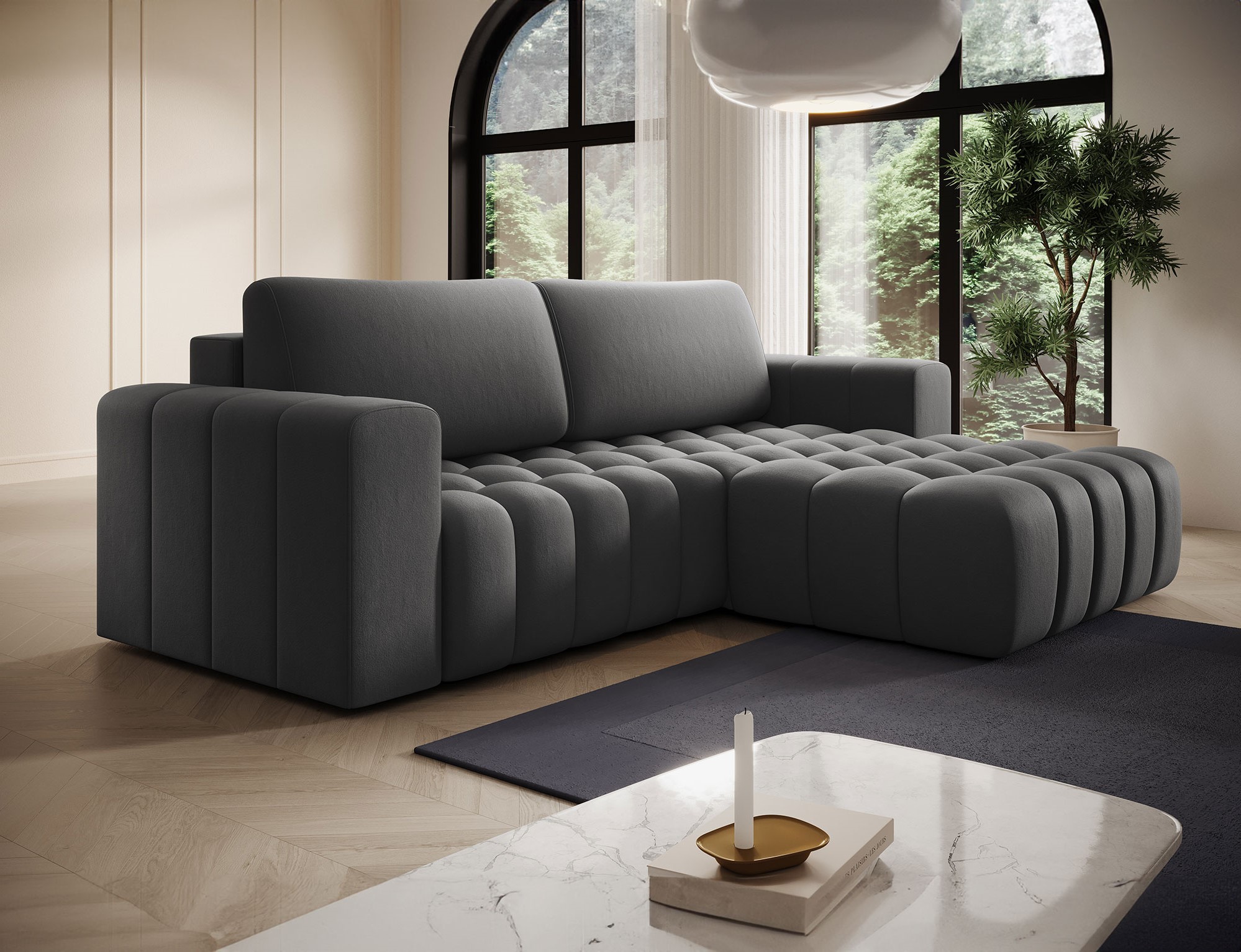 Canapé convertible design velours matelassé anthracite angle droit Bozen 250cm