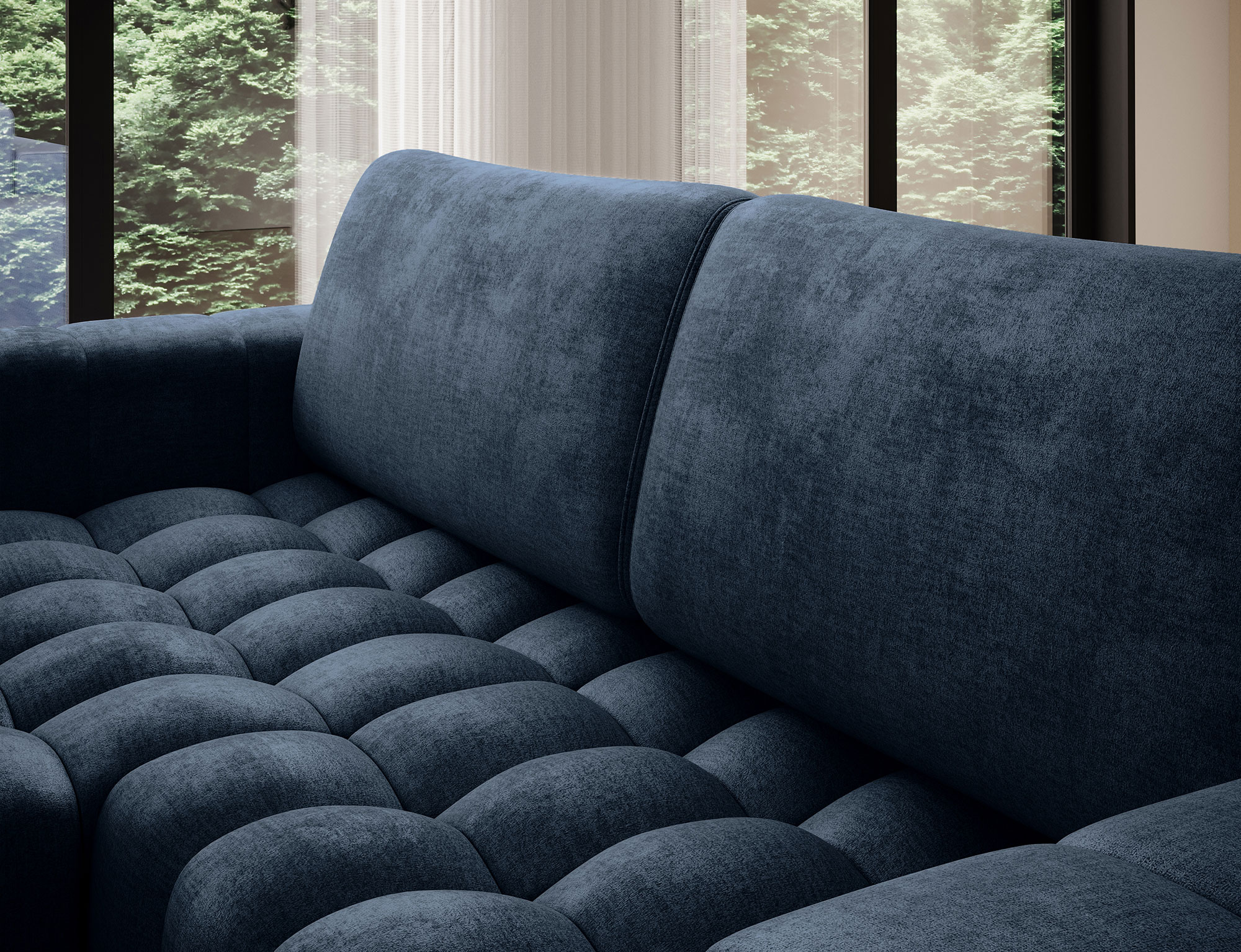 Canapé convertible design velours matelassé bleu marine angle gauche Bozen 250cm