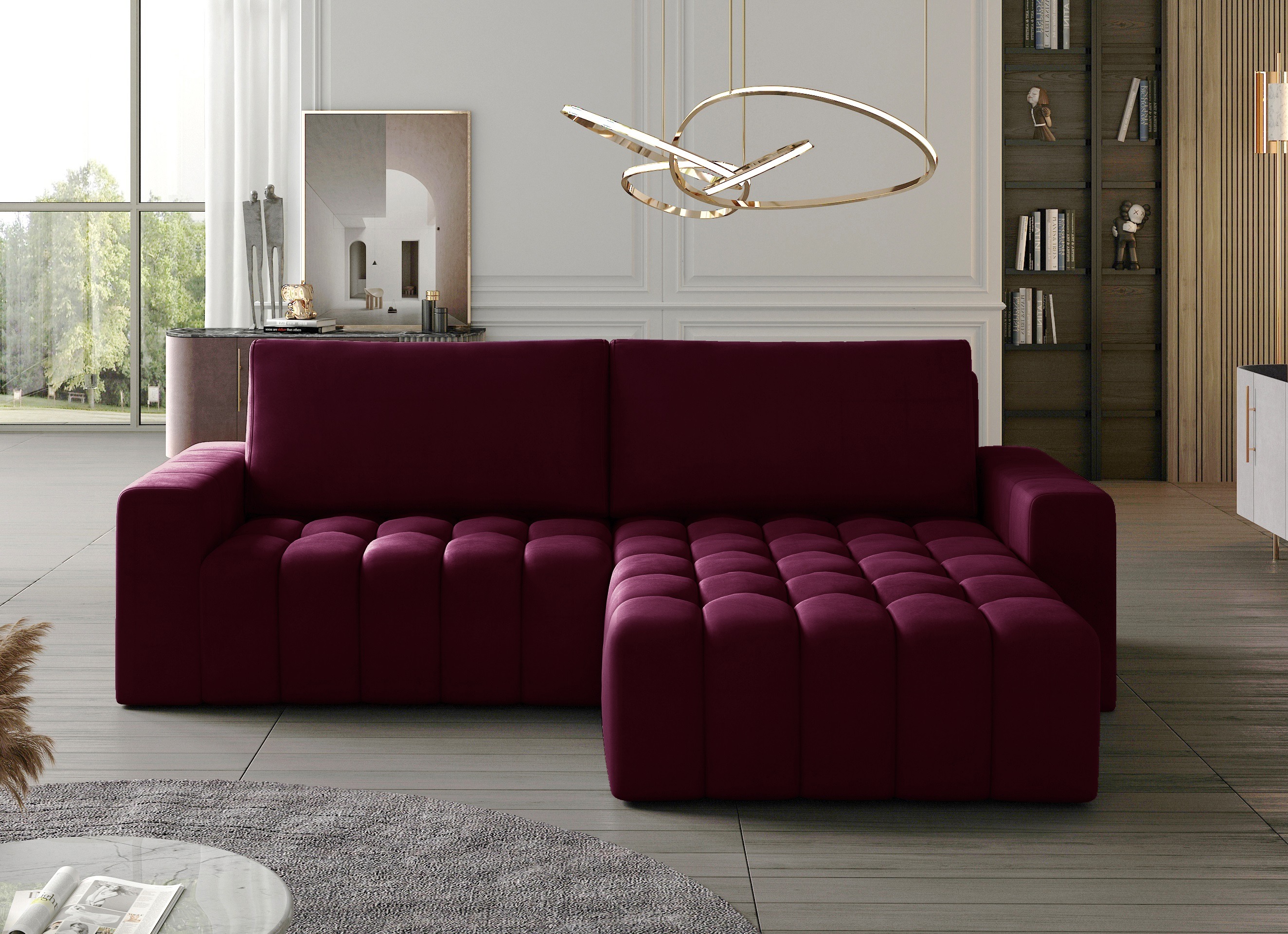 | Libellé | Canapé convertible design velours matelassé bordeaux angle droit Bozen 250cm |