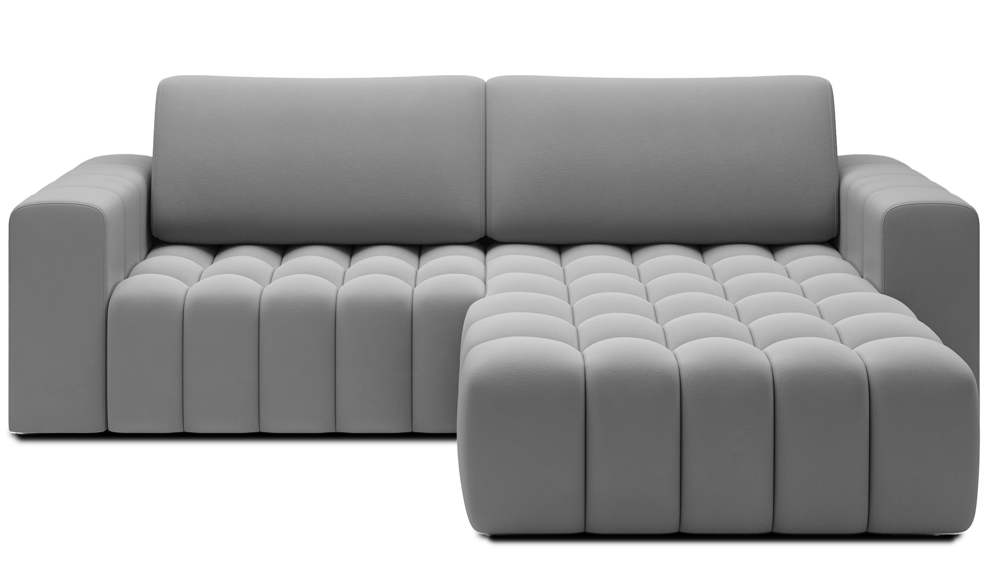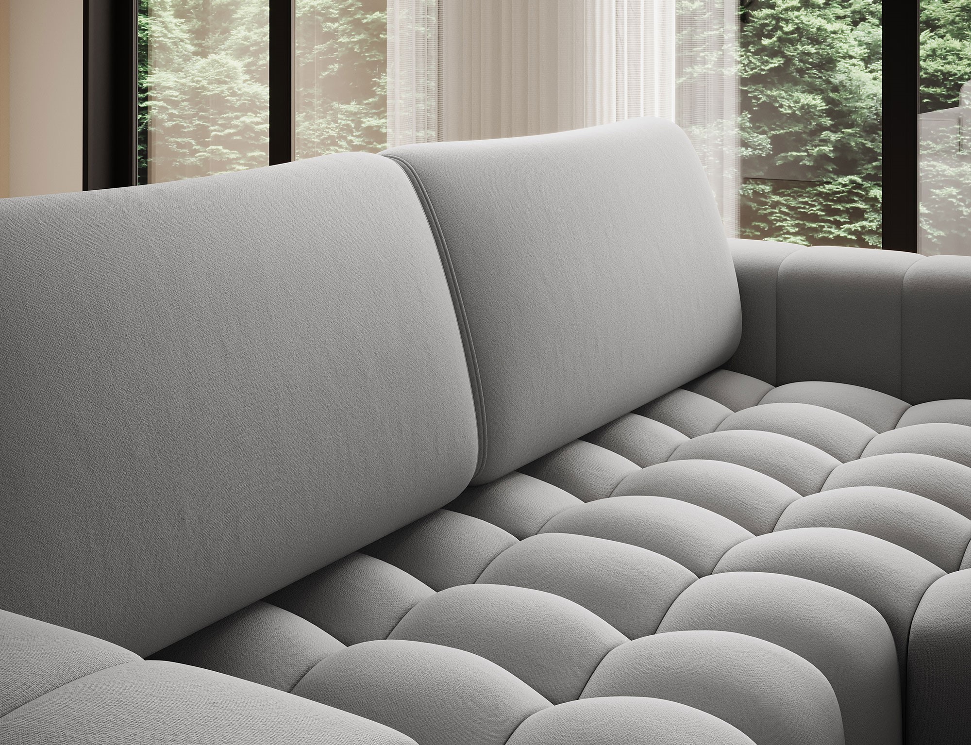 Canapé convertible design velours matelassé gris angle droit Bozen 250cm