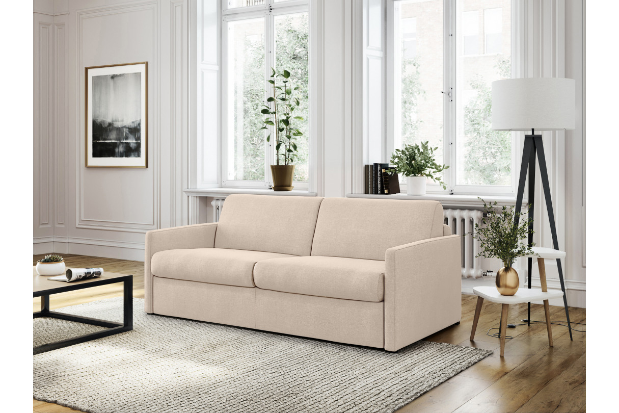 Canapé convertible express 3 places AGATHE en Tissu - matelas 13cm - Beige, Couchage 140x190cm