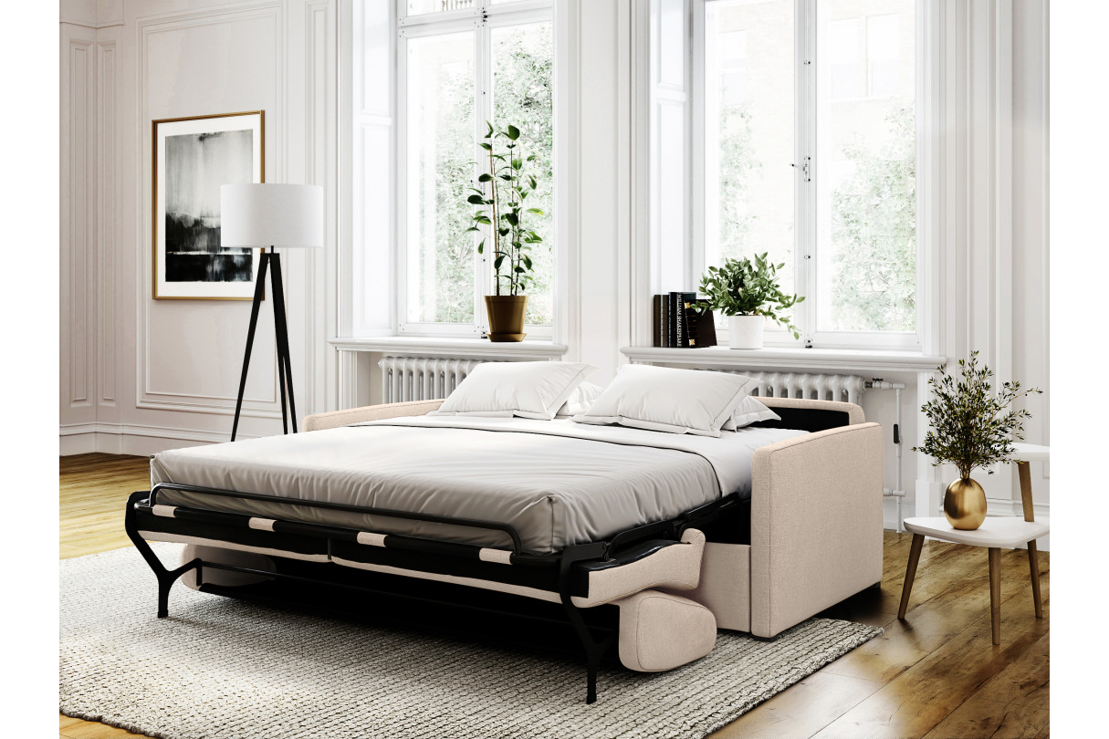 Canapé convertible express 3 places AGATHE en Tissu - matelas 13cm - Beige, Couchage 160x190cm