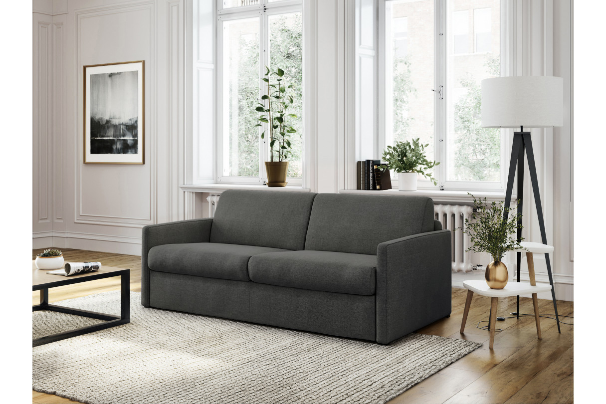 Canapé convertible express 3 places AGATHE en Tissu - matelas 13cm - Gris foncé, Couchage 140x190cm