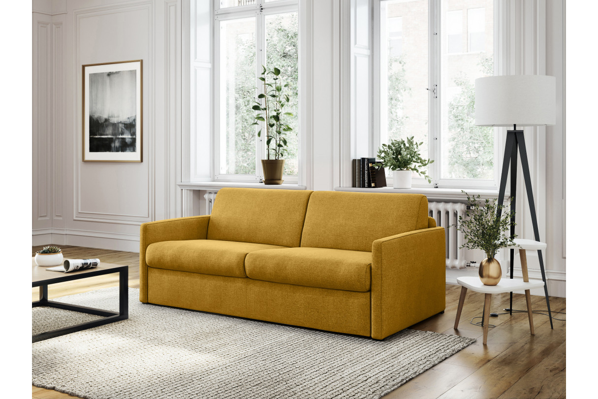 Canapé convertible express 3 places AGATHE en Tissu - matelas 13cm - Jaune, Couchage 140x190cm
