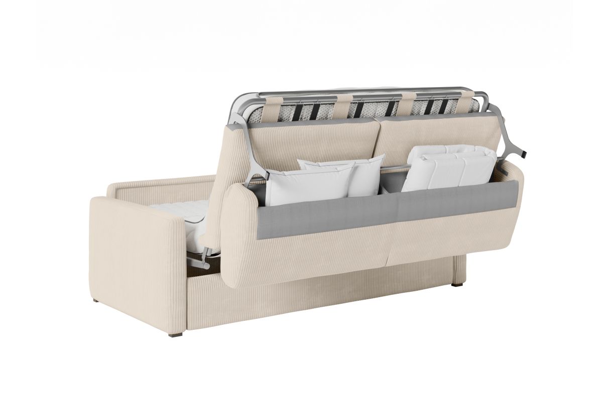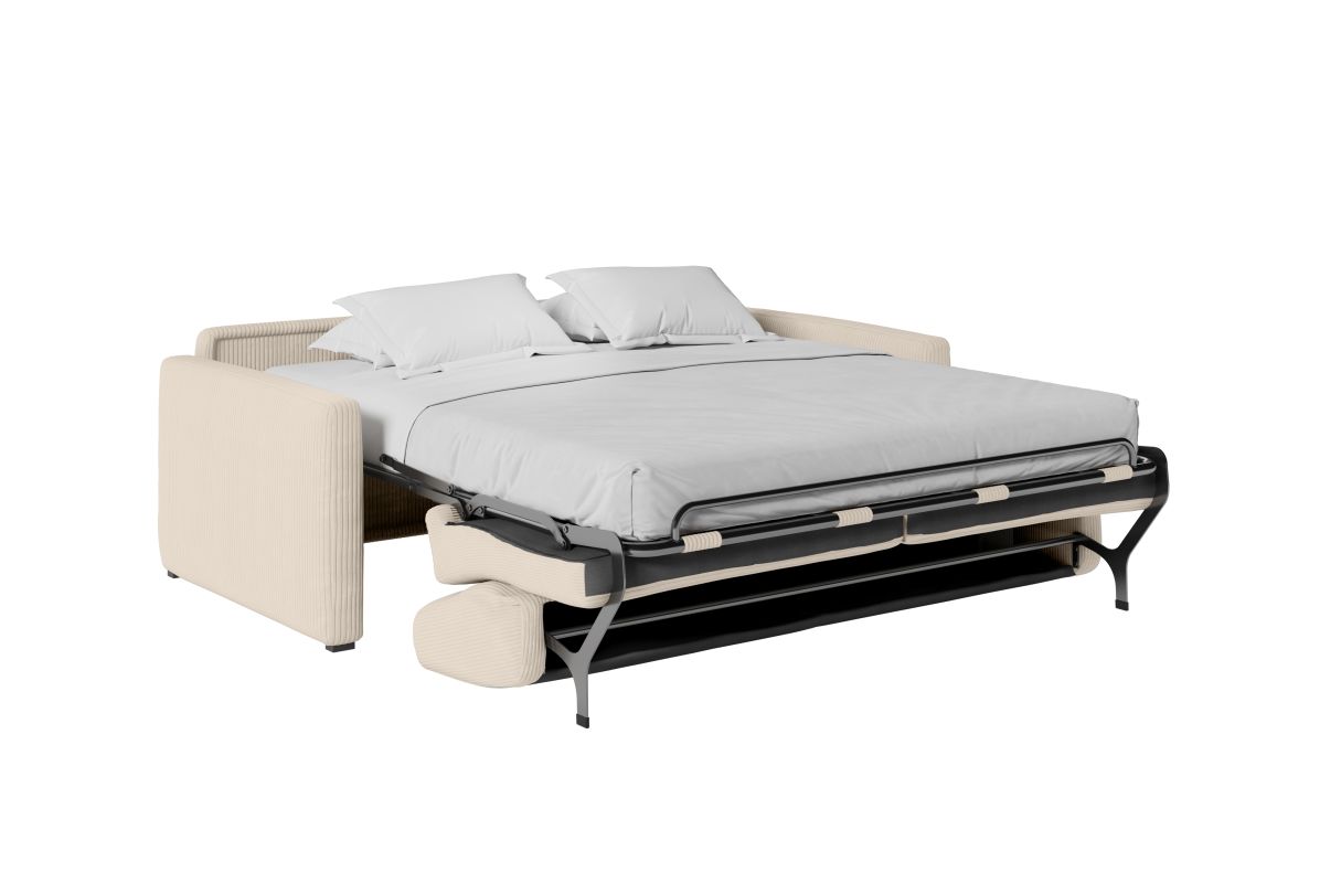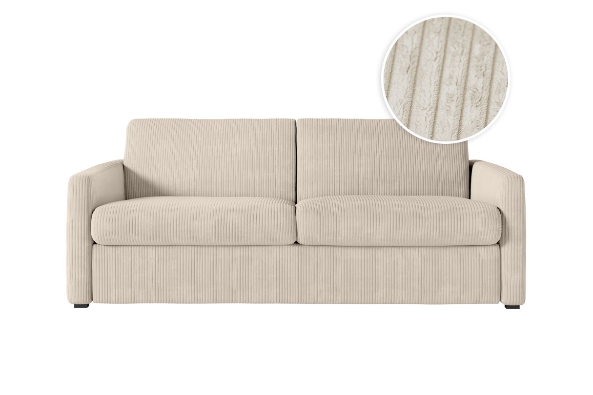 Canapé convertible express 3 places AGATHE en velours côtelé - Matelas 13cm - Beige - 160x190cm