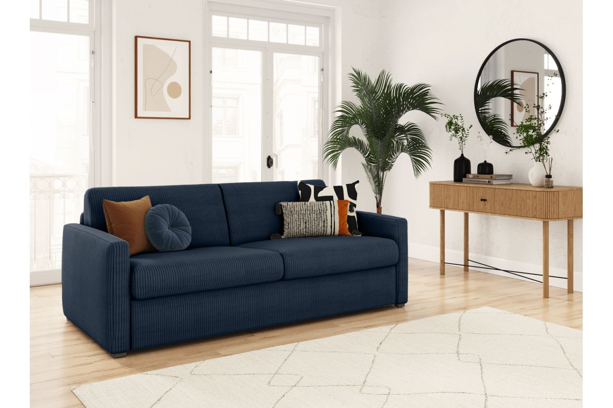 | Libellé | Canapé convertible express 3 places AGATHE en velours côtelé - Matelas 13cm - Bleu foncé - 160x190cm |