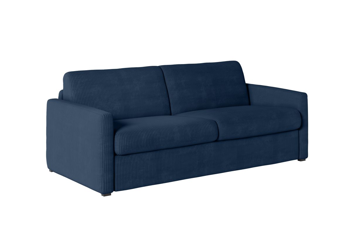 Canapé convertible express 3 places AGATHE en velours côtelé - Matelas 13cm - Bleu foncé - 160x190cm