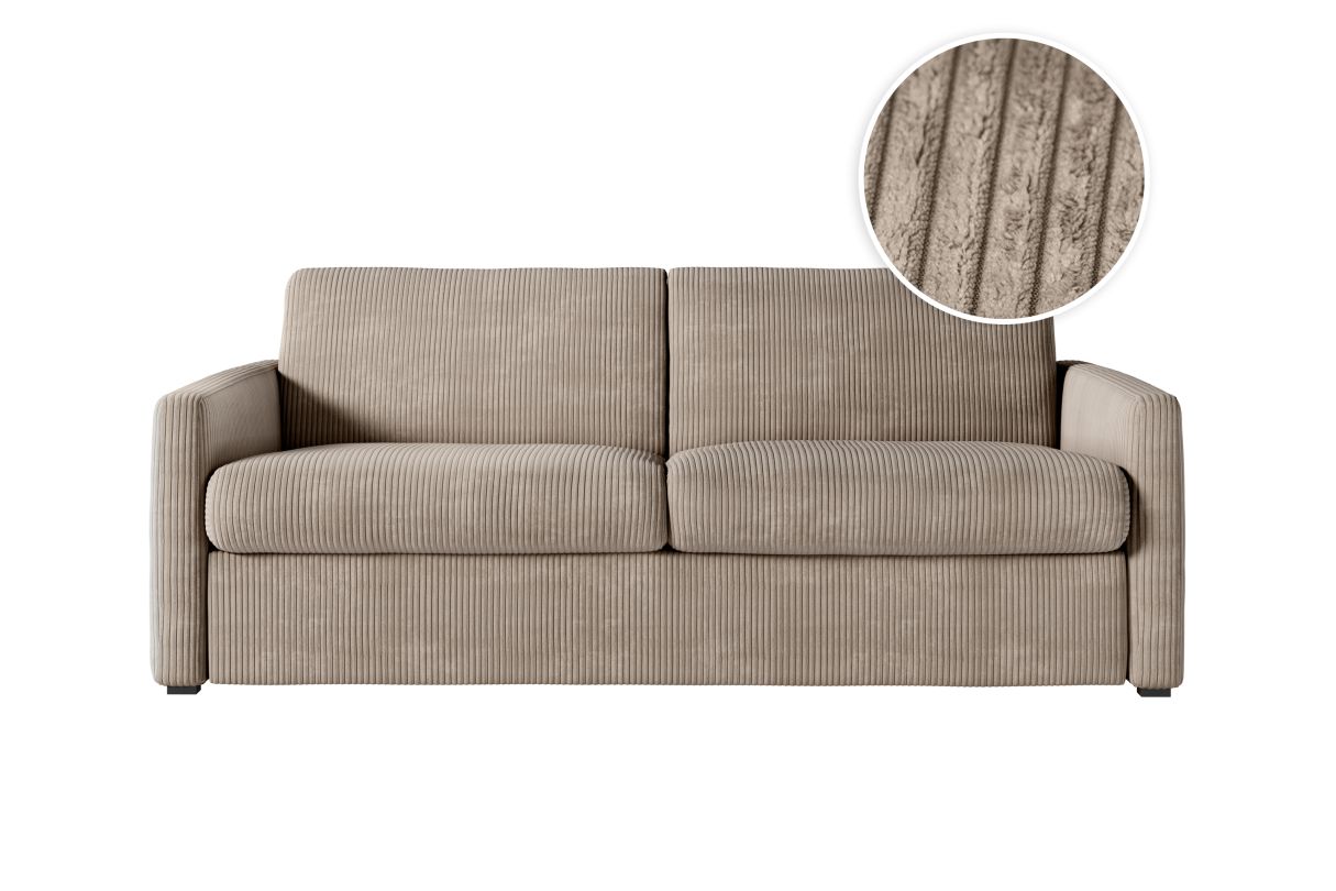 Canapé convertible express 3 places AGATHE en velours côtelé - Matelas 13cm - Taupe - 140x190cm