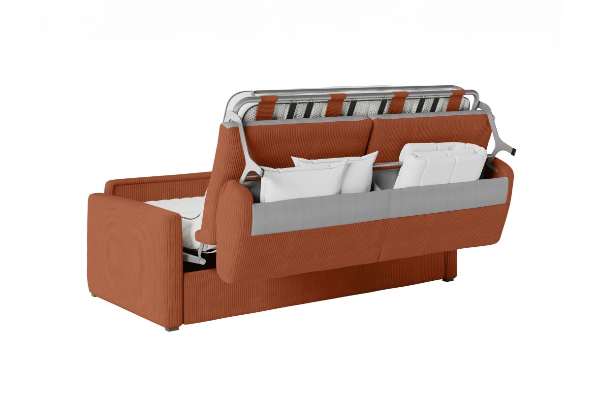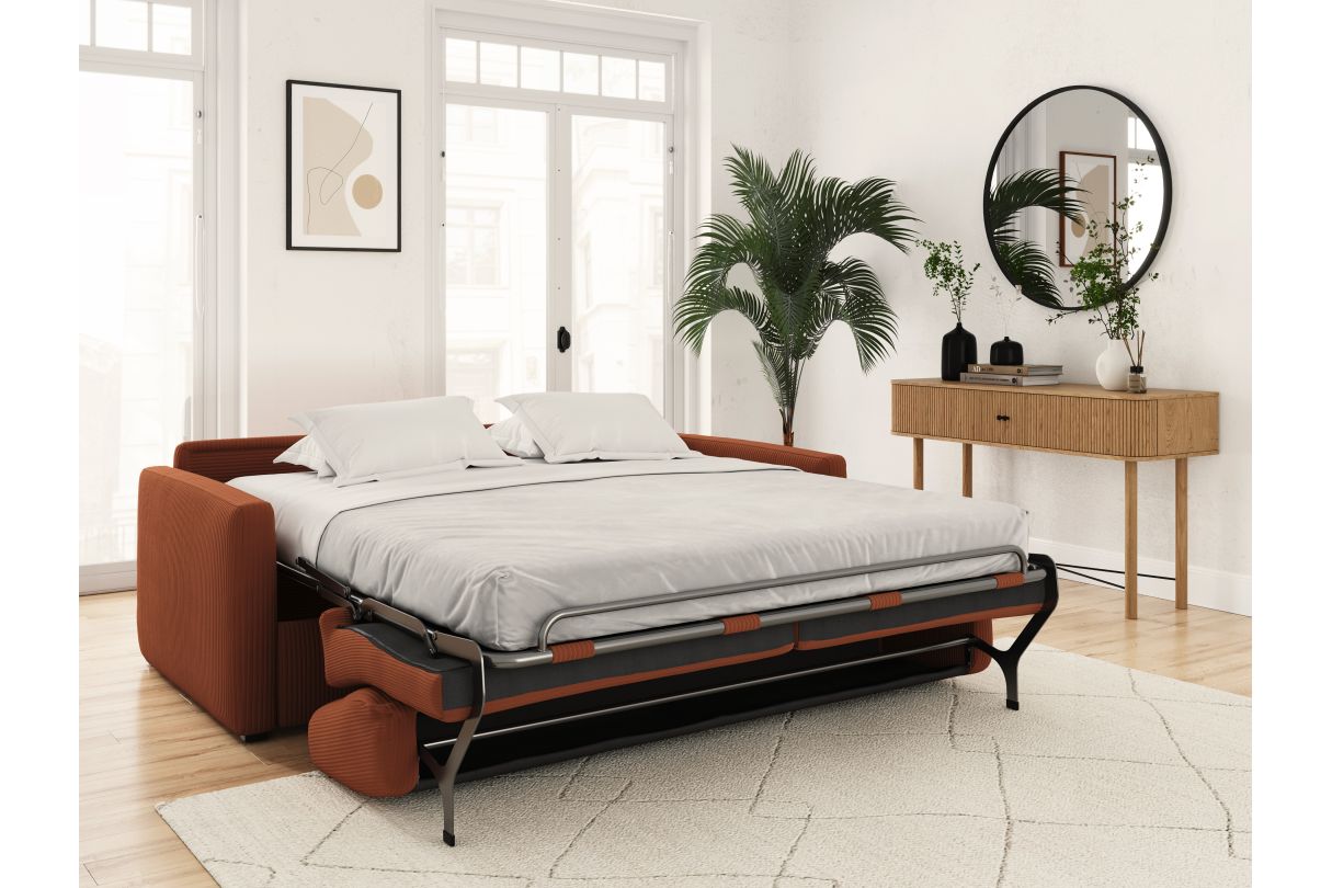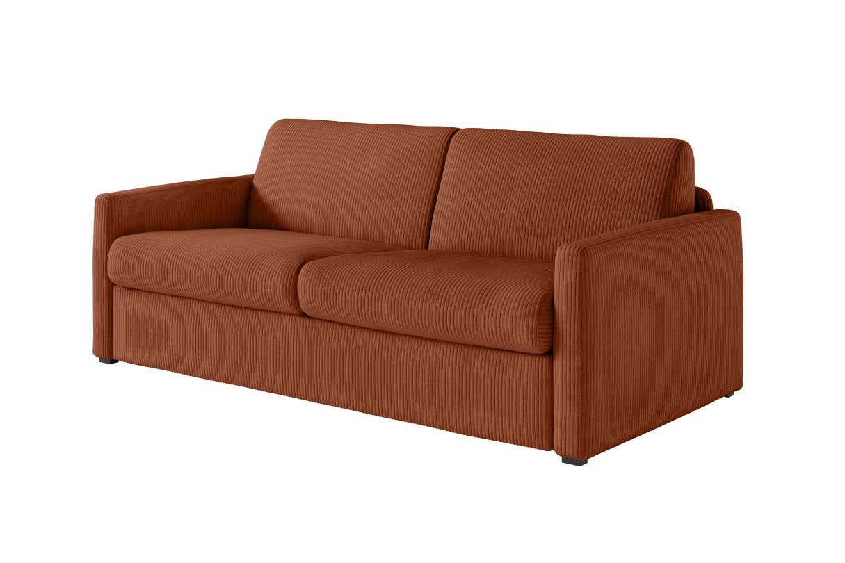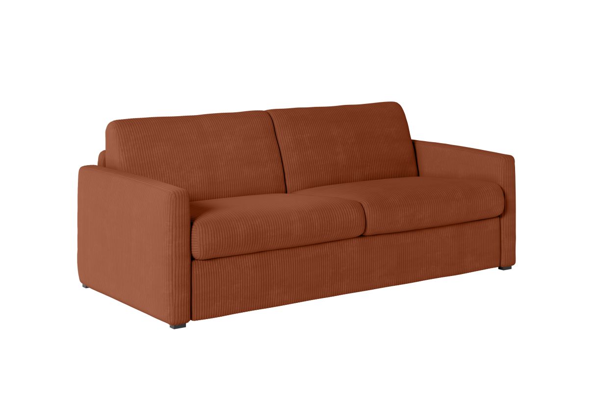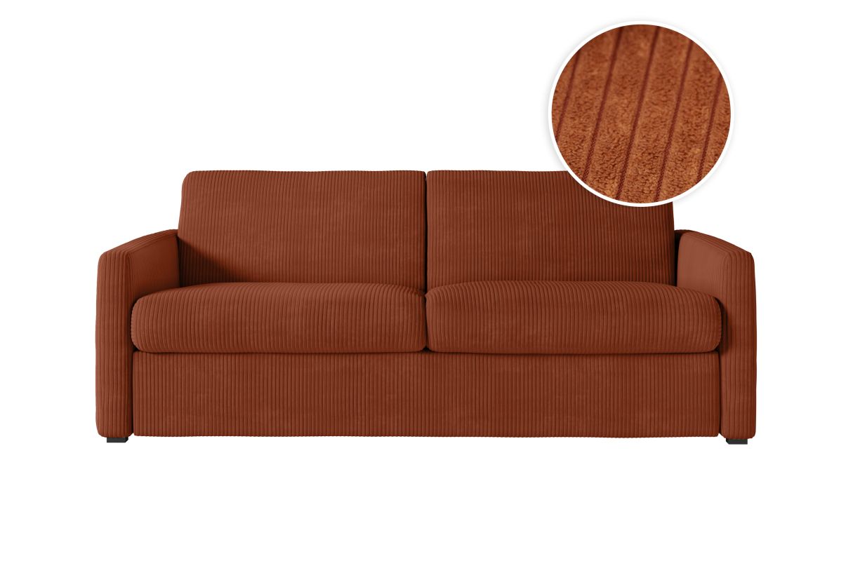 Canapé convertible express 3 places AGATHE en velours côtelé - Matelas 13cm - Terracotta - 160x190cm
