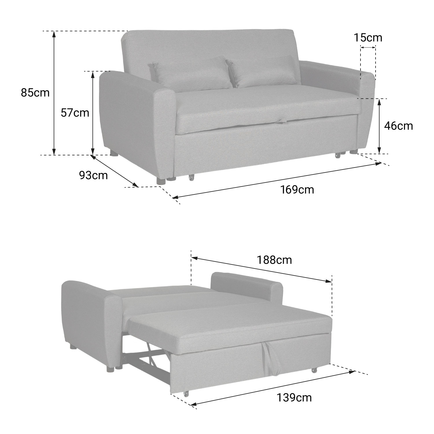 Vous n'aurez plus à vous soucier de recevoir des invités pour la nuit grâce à ce canapé convertible qui passe du sofa au lit de manière simple et rapide. Tirez simplement la poignée située sous l'assise et déployez le lit sans effort, dès que vous en avez besoin. Le modèle MATT a été fabriqué à partir de matériaux de qualité, avec du bois de bouleau et d'eucalyptus pour sa structure. Un revêtement en tissu complète son look qui s'accordera facilement avec votre style de décoration d'intérieur, quel qu'il soit. Ce canapé-lit 2 places est doté d'accoudoirs, d'un haut dossier et de deux coussins qui maximisent votre confort durant les moments de détente à la maison. Choisissez-le pour aménager votre salon.