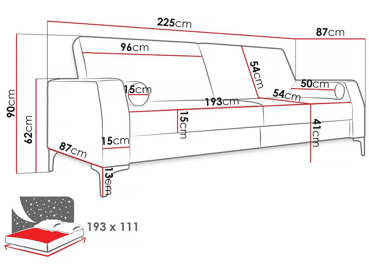 Descriptif:Canapé convertible Noelia - 225 x 87 x 90 cm - 3 places - Gris - Structure en bois - Espace de rangement intégré - Deux petits oreillers inclus.Type :Canapé convertible.Couleur:Gris.Nombre de places:3.couleur (filtre):Gris.Matiere (Filtre):Tissu.Nombre de places (Filtre):3 places.Assise:Mousse T25 + ressorts ondulés.Structure:Bois.Densité:25kg/m3.Pieds:Pieds en métal - Hauteur : 13 cm.Dimensions de couchage:193 x 111 cm.Dimensions du canapé:225 x 87 x 90 cm.Hauteur d'assise:41 cm.Profondeur d'assise:54 cm.Epaisseur d'assise :15 cm.Hauteur dossier:54 cm.Largeur:225 cm.Profondeur:87 cm.Hauteur:90 cm.Largeur accoudoir:15 cm.Fonction de couchage Espace de rangement intégré Deux polochons inclus .Colisage:2 colis : - 1,96 x 1,145 x 0,3 m, 43 kg - 0,885 x 0,28 x 0,585 m, 19,5 kg.