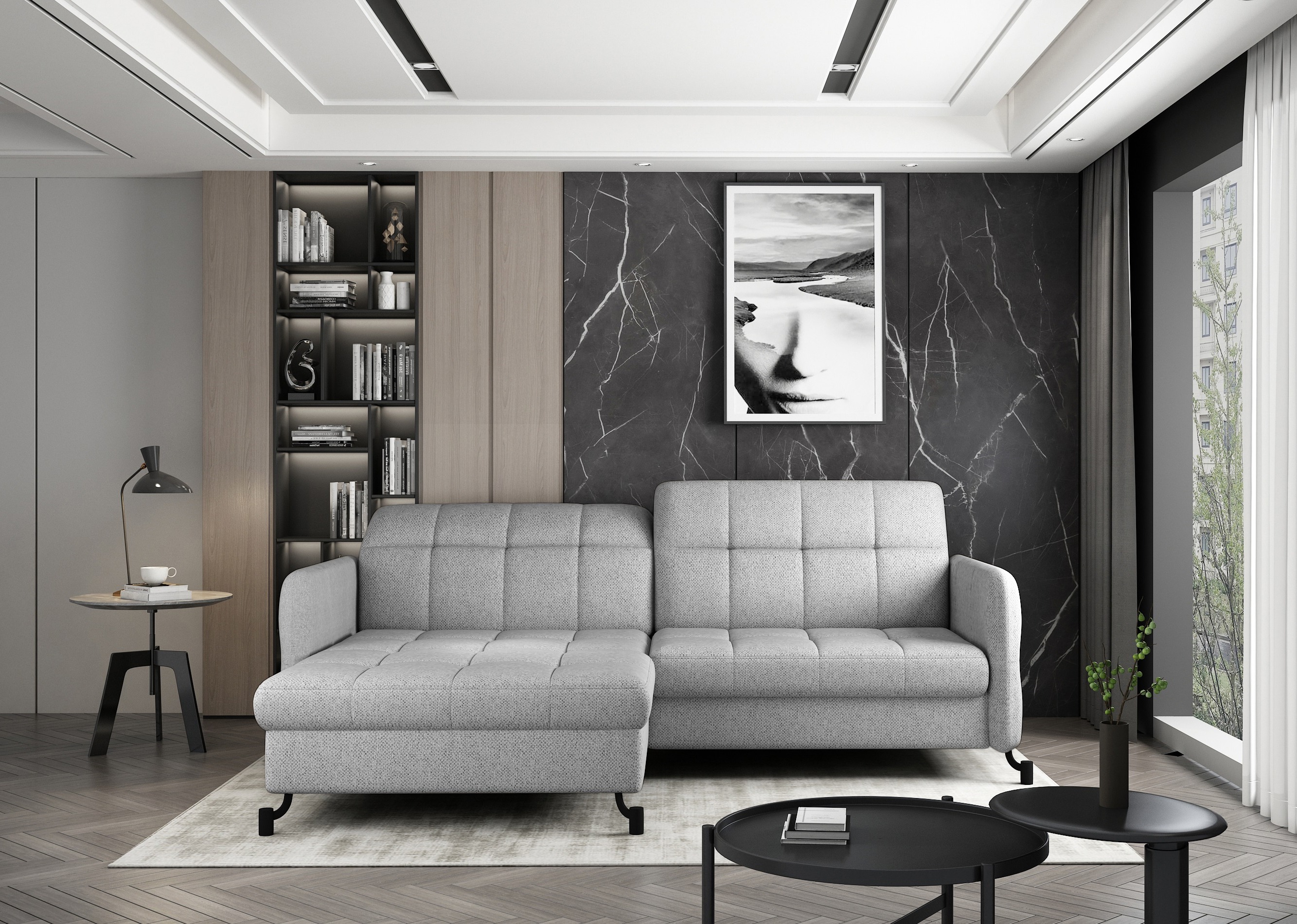 Canapé convertible tissu matelassé gris clair angle gauche Lory 225cm