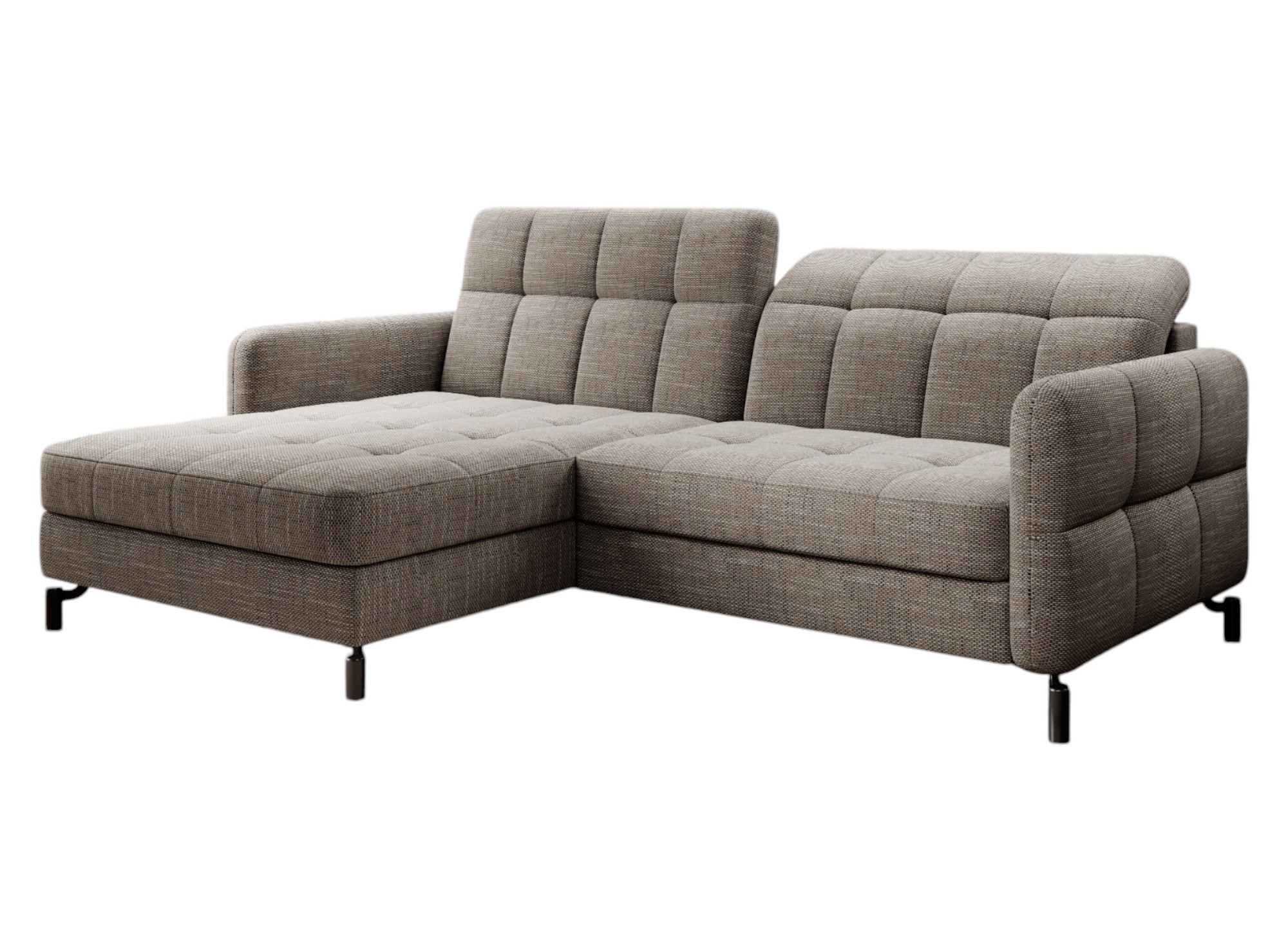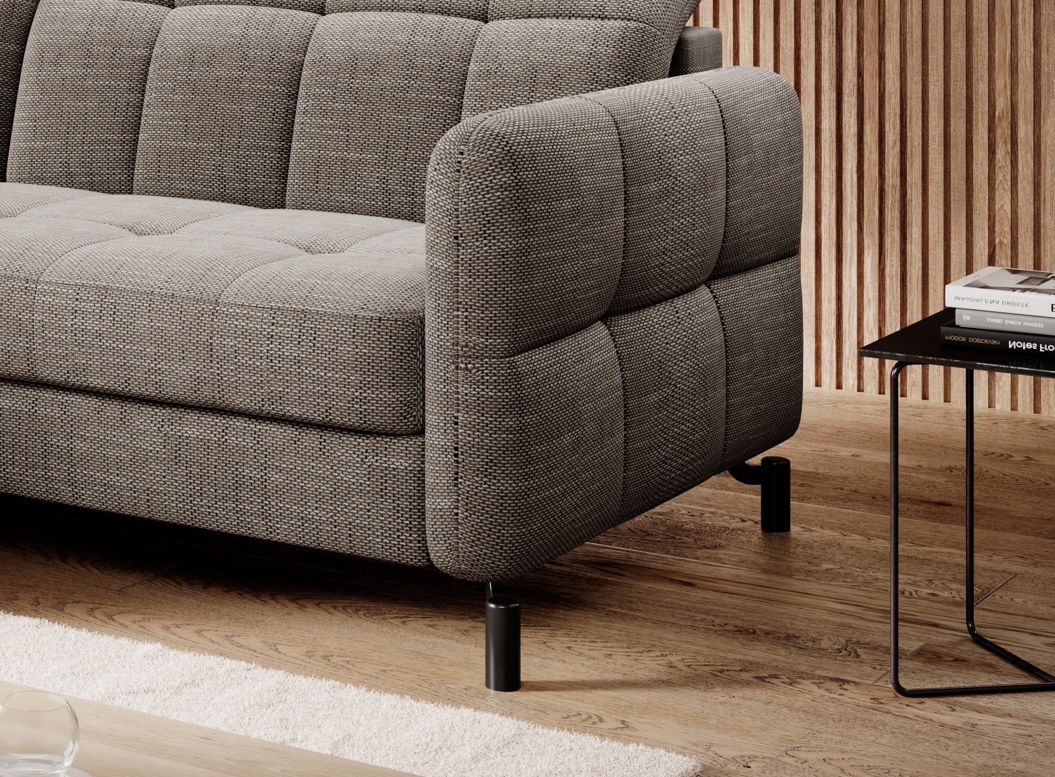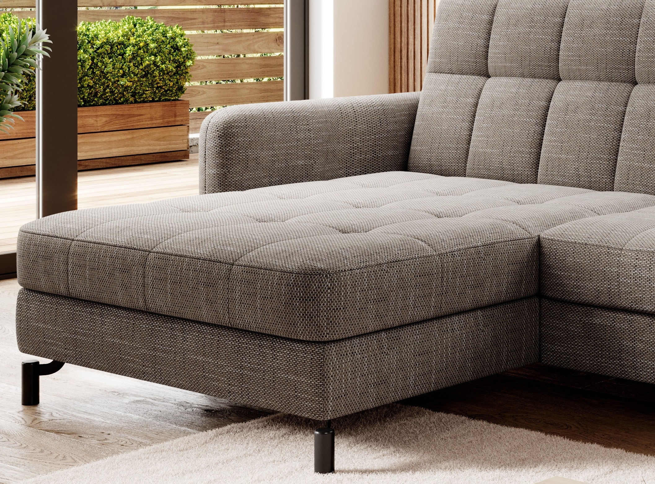 Canapé convertible tissu matelassé taupe chiné angle gauche Lory 225cm