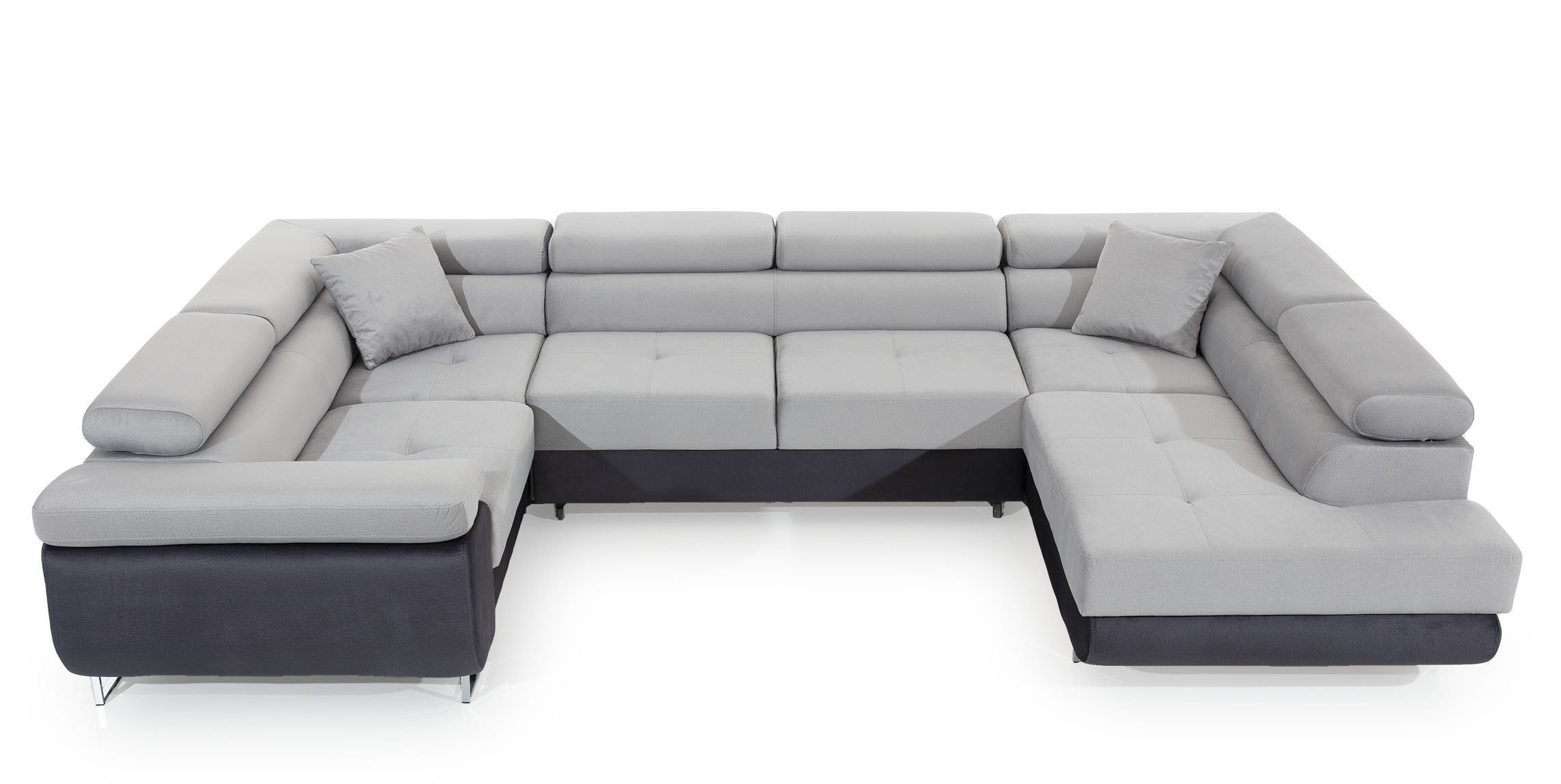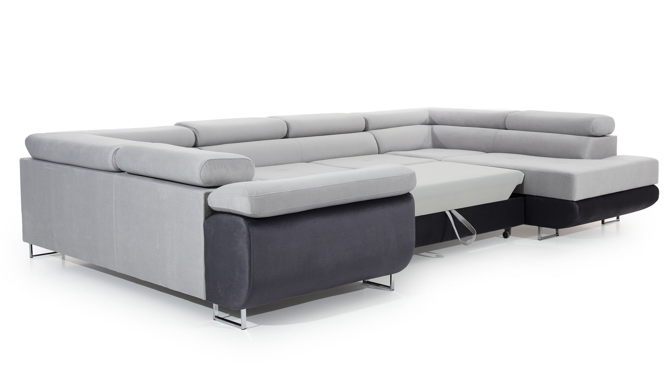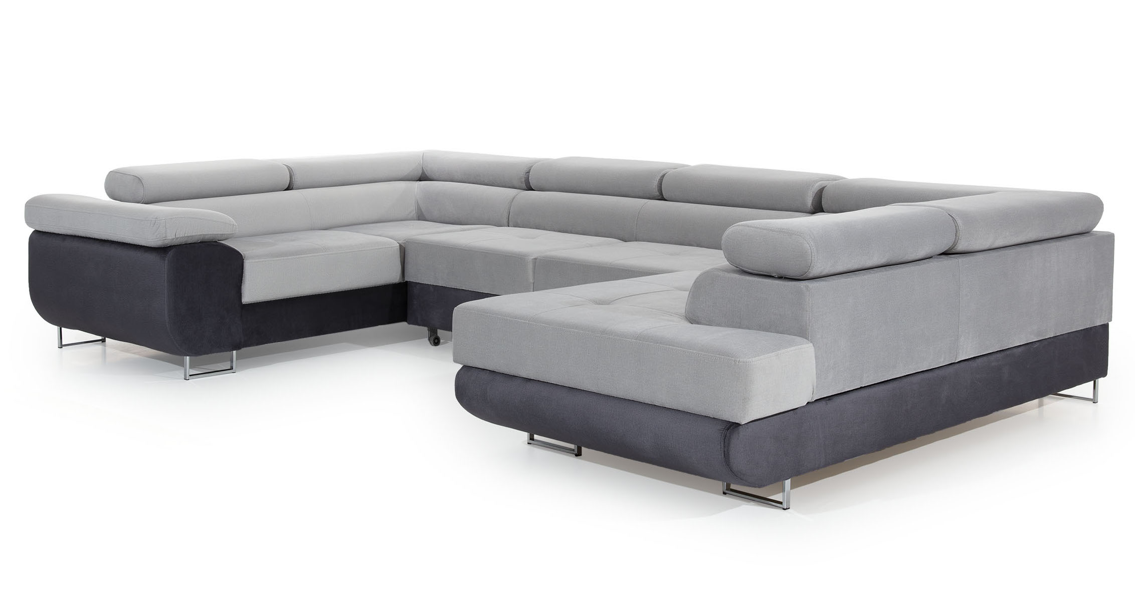 Canapés d'angle Tovy avec têtières réglables: élégance moderne Une disposition classique avec une construction stable à partir de matériaux de la plus haute qualité et une finition au design moderne : ce sont les éléments clés du canapé d'angle Tovy, un choix parfait pour les salons minimalistes spacieux et modernes. La disposition en forme de U offre beaucoup d'espace pour une détente facile, et ce n'est pas étonnant car le Tovy mesure 340x202x90 cm. Le canapé d'angle est doté d'une assise confortable accentuée par un capitonnage subtil et des coutures élégantes, des dossiers ergonomiques et des appuie-tête réglables pour améliorer encore plus le niveau de confort. Il comporte un accoudoir à une extrémité. Le canapé repose sur de hauts pieds métalliques raffinés en chrome poli. La sélection d'options comprend un revêtement monotone et une combinaison de deux couleurs contrastées, vous permettant de choisir facilement une version qui s'harmonise parfaitement avec votre décoration intérieure. Qualité supérieure garantie Outre son design élégant, le canapé d'angle panoramique Tovy se distingue par sa grande fonctionnalité et sa perfection de fabrication, ce qui le rend solide pour qu'il dure très longtemps. La construction robuste est finie avec un rembourrage confortable, optimisant le soutien du corps pour une grande détente. Un avantage qui ajoute de la fonctionnalité à ce modèle est qu'il s'agit d'un canapé-lit. Le système de pliage coulissant intuitif vous permet de le transformer en un lit confortable de 125x253 cm et doté d'un grand rangement pour le linge de lit dans le pouf. Modèle : 5 places - 2 angles (têtières réglables et 2 oreillers inclus) Largeur du canapé : 340 cm Méridienne gauche vue de face : L 96 x P 202 cm Méridienne droite vue de face avec coffre de rangement : L 105 x P 202 cm Espace entre les 2 méridiennes : 140 cm Profondeur : 90 cm Profondeur d'assise : 58 cm Hauteur : 90 cm - sans coussins 70 cm Hauteur d'assise : 43 cm Surface de couchage: 125x253 cm g]Poids : 198 kg Coloris : beige chiné et crème Revêtement structure : PU - 100% PU - Garnissage poids : 425 g/m². - Résistance du revêtement à l'abrasion - Inflammable et anti-taches Revêtement assise et dossier : tissu italien haute qualité - 100% polyester - Garnissage poids : 315 g/m². - Résistance du revêtement à l'abrasion - Inflammable et anti-taches Structure : Bois massif et panneau de particules Pieds en acier chromé: argent Matière et densité dossier assise : - Assise : Mousse polyester 40 kg/m³ HR - Dossier et accoudoirs : 30 kg/m³ HR - Rembourrage : Ressort ondulé Mousse de haute qualité et hautement élastique Fabrication européenne - Garantie 5 ans 3 colis : 200x110x85 cm - 175x95x85 cm - 200x110x85