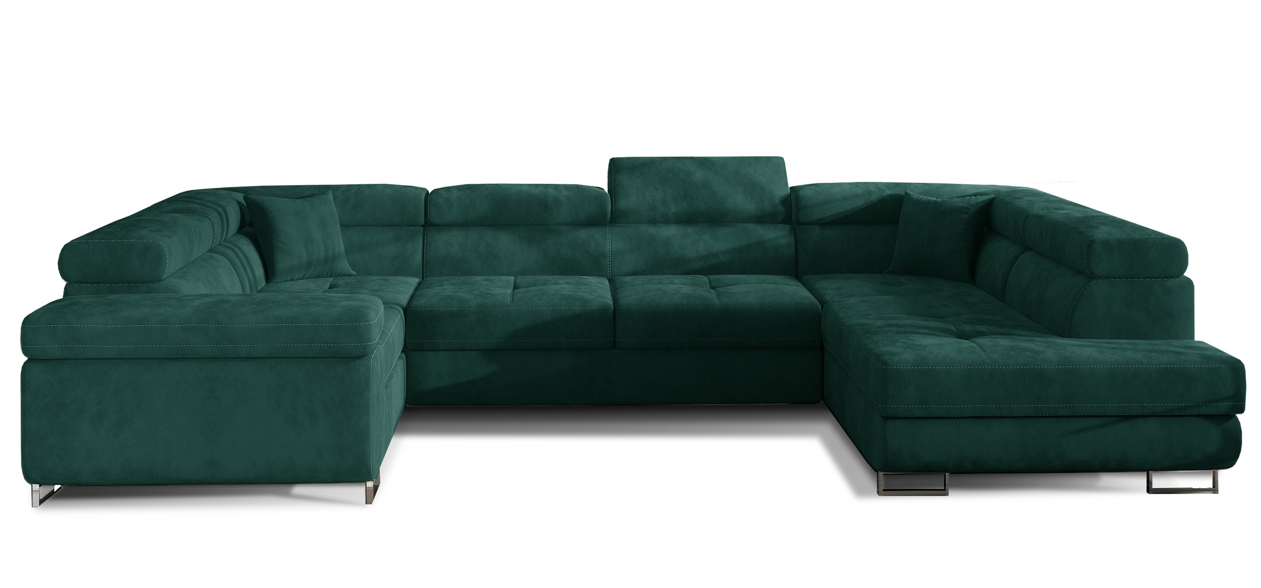 | Libellé | Canapé convertible U droit velours vert avec coffre de rangement Tovy 340cm |