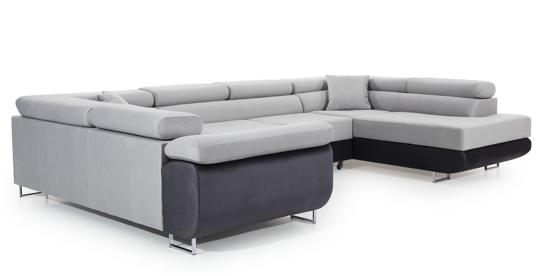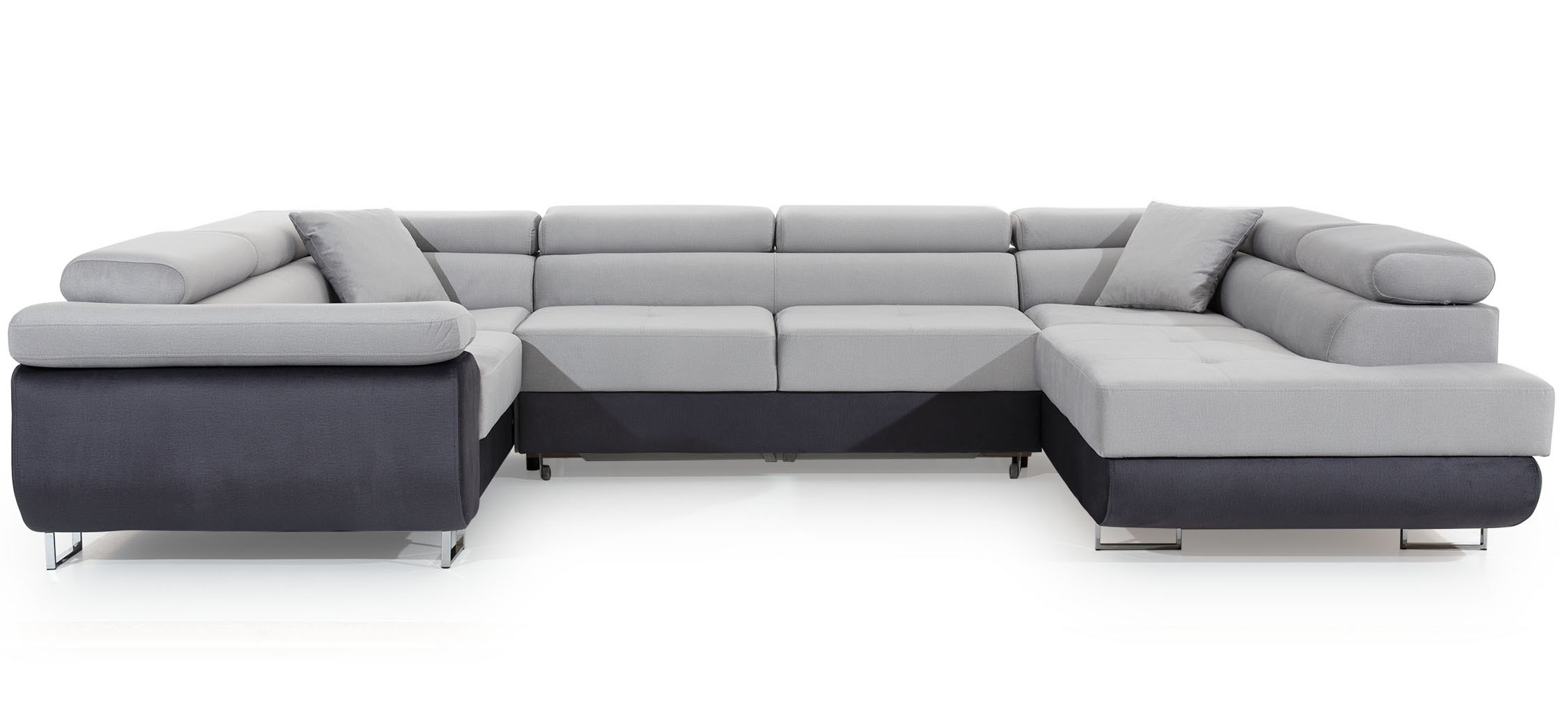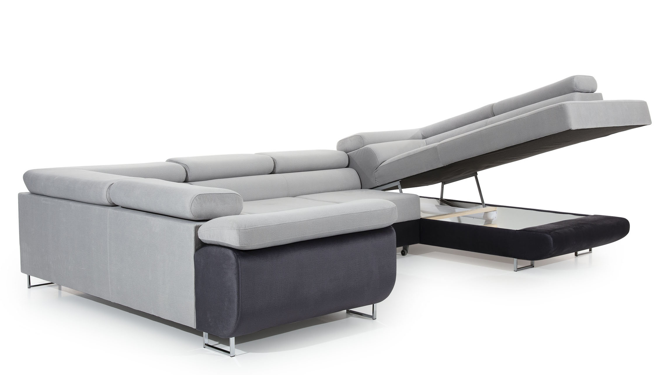 Canapés d'angle Tovy avec têtières réglables: élégance moderne Une disposition classique avec une construction stable à partir de matériaux de la plus haute qualité et une finition au design moderne : ce sont les éléments clés du canapé d'angle Tovy, un choix parfait pour les salons minimalistes spacieux et modernes. La disposition en forme de U offre beaucoup d'espace pour une détente facile, et ce n'est pas étonnant car le Tovy mesure 340x202x90 cm. Le canapé d'angle est doté d'une assise confortable accentuée par un capitonnage subtil et des coutures élégantes, des dossiers ergonomiques et des appuie-tête réglables pour améliorer encore plus le niveau de confort. Il comporte un accoudoir à une extrémité. Le canapé repose sur de hauts pieds métalliques raffinés en chrome poli. La sélection d'options comprend un revêtement monotone et une combinaison de deux couleurs contrastées, vous permettant de choisir facilement une version qui s'harmonise parfaitement avec votre décoration intérieure. Qualité supérieure garantie Outre son design élégant, le canapé d'angle panoramique Tovy se distingue par sa grande fonctionnalité et sa perfection de fabrication, ce qui le rend solide pour qu'il dure très longtemps. La construction robuste est finie avec un rembourrage confortable, optimisant le soutien du corps pour une grande détente. Un avantage qui ajoute de la fonctionnalité à ce modèle est qu'il s'agit d'un canapé-lit. Le système de pliage coulissant intuitif vous permet de le transformer en un lit confortable de 125x253 cm et doté d'un grand rangement pour le linge de lit dans le pouf. Modèle : 5 places - 2 angles (têtières réglables et 2 oreillers inclus) Largeur du canapé : 340 cm Méridienne gauche vue de face : L 96 x P 202 cm Méridienne droite vue de face avec coffre de rangement : L 105 x P 202 cm Espace entre les 2 méridiennes : 140 cm Profondeur : 90 cm Profondeur d'assise : 58 cm Hauteur : 90 cm - sans coussins 70 cm Hauteur d'assise : 43 cm Surface de couchage: 125x253 cm g]Poids : 198 kg Coloris : vert Revêtement : velours italien haute qualité - 100% polyester - Garnissage poids : 425 g/m². - Résistance du revêtement à l'abrasion - Inflammable et anti-taches Structure : Bois massif et panneau de particules Pieds en acier chromé: argent Matière et densité dossier assise : - Assise : Mousse polyester 40 kg/m³ HR - Dossier et accoudoirs : 30 kg/m³ HR - Rembourrage : Ressort ondulé Mousse de haute qualité et hautement élastique Fabrication européenne - Garantie 5 ans 3 colis : 200x110x85 cm - 175x95x85 cm - 200x110x85